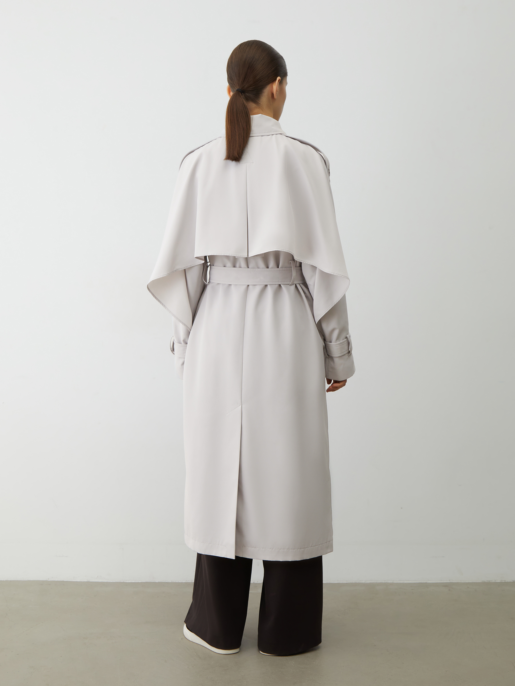 Тренч двубортный с погонами (Светло-серый)