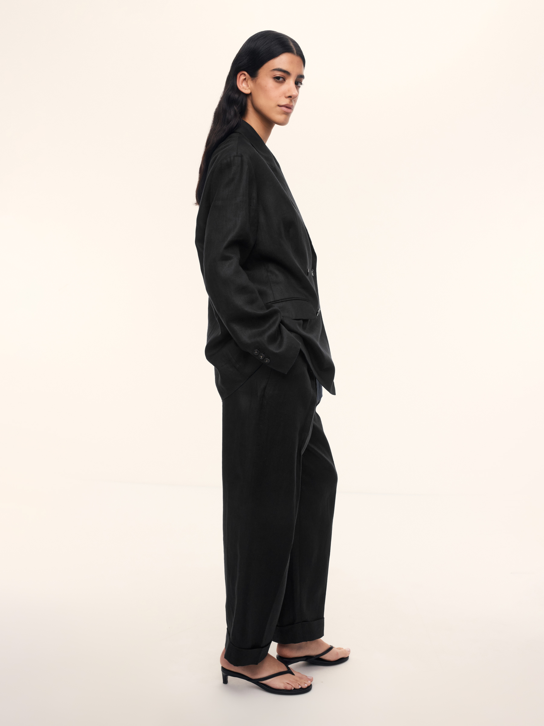 Брюки из плотного льна (Черный)