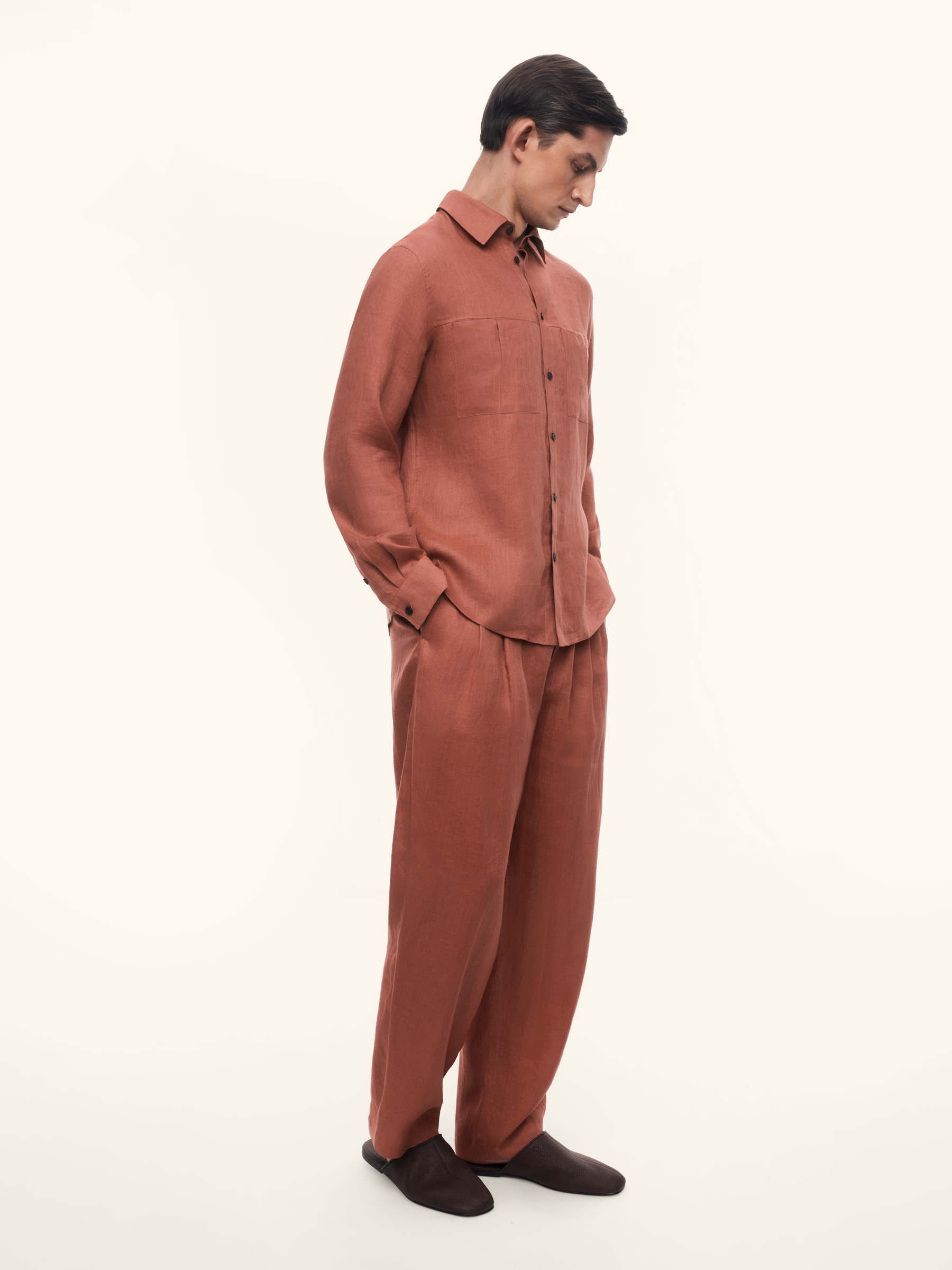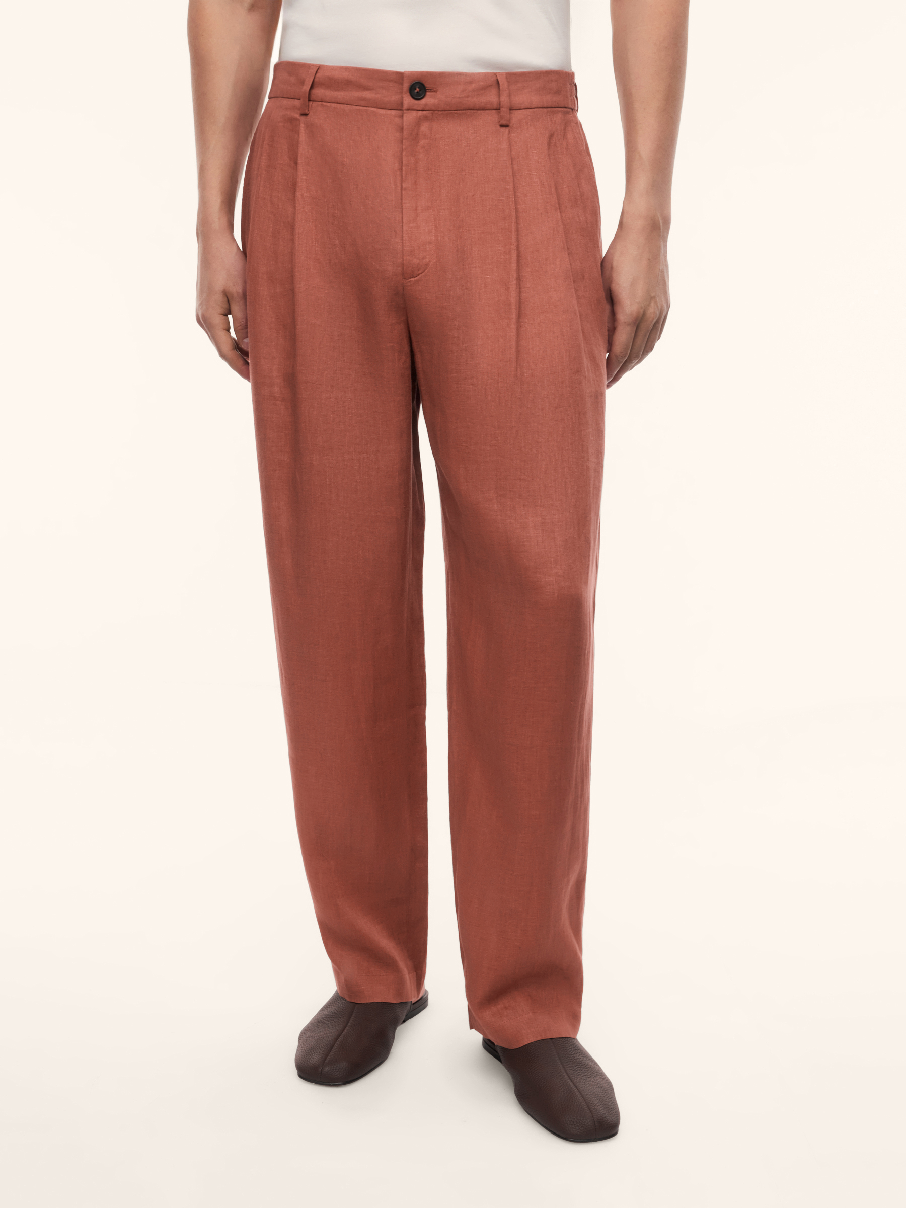 Брюки Bourbon из тонкого льна (Кирпичный)