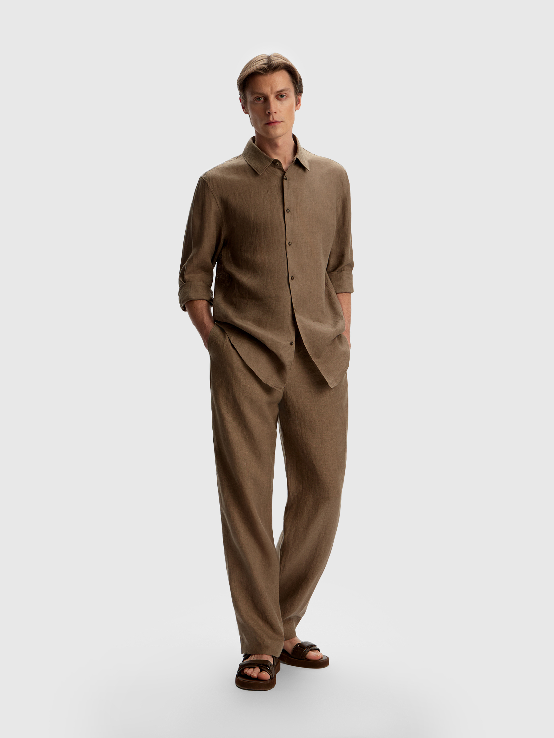 Брюки льняные (Кофейный)