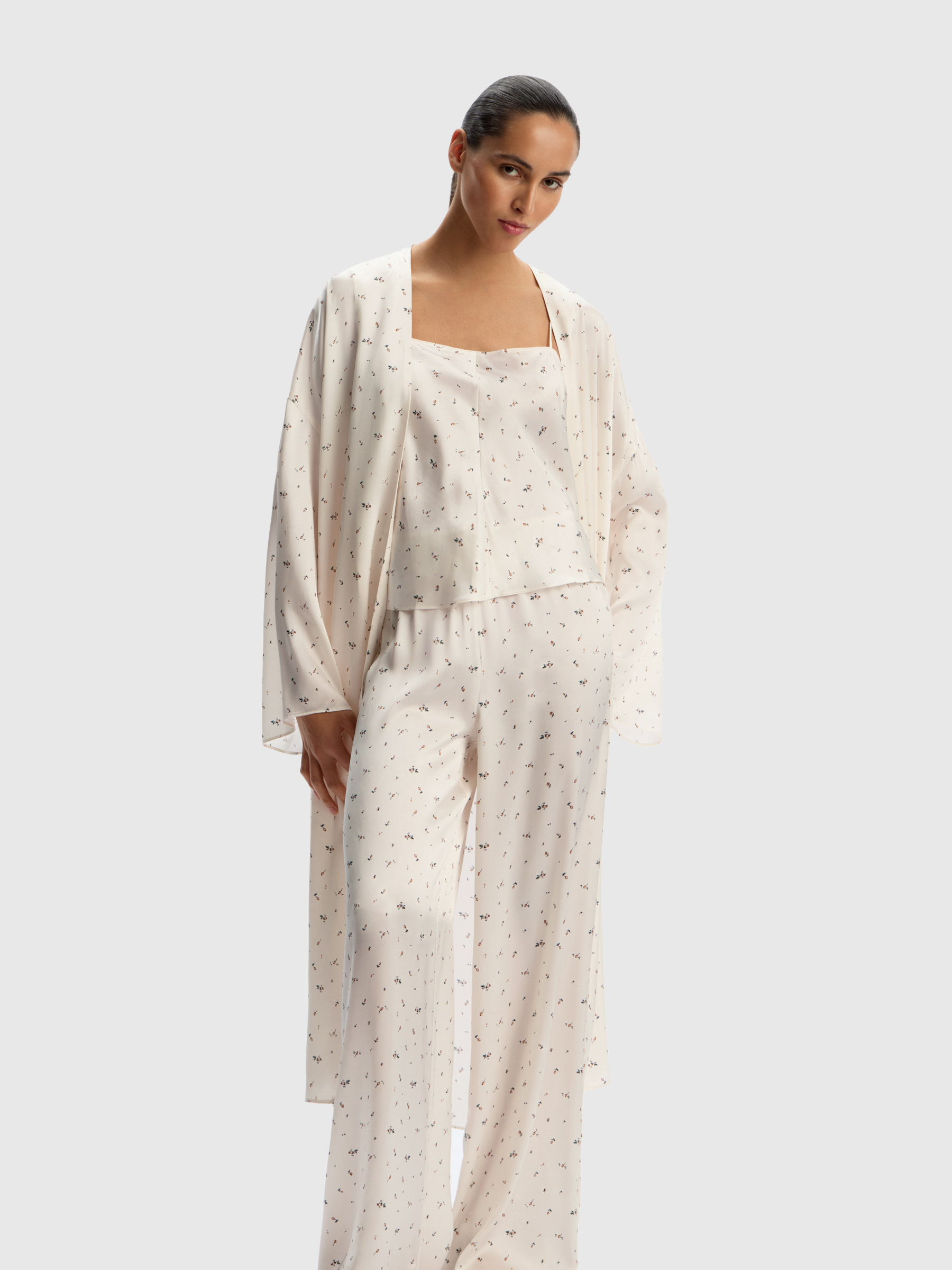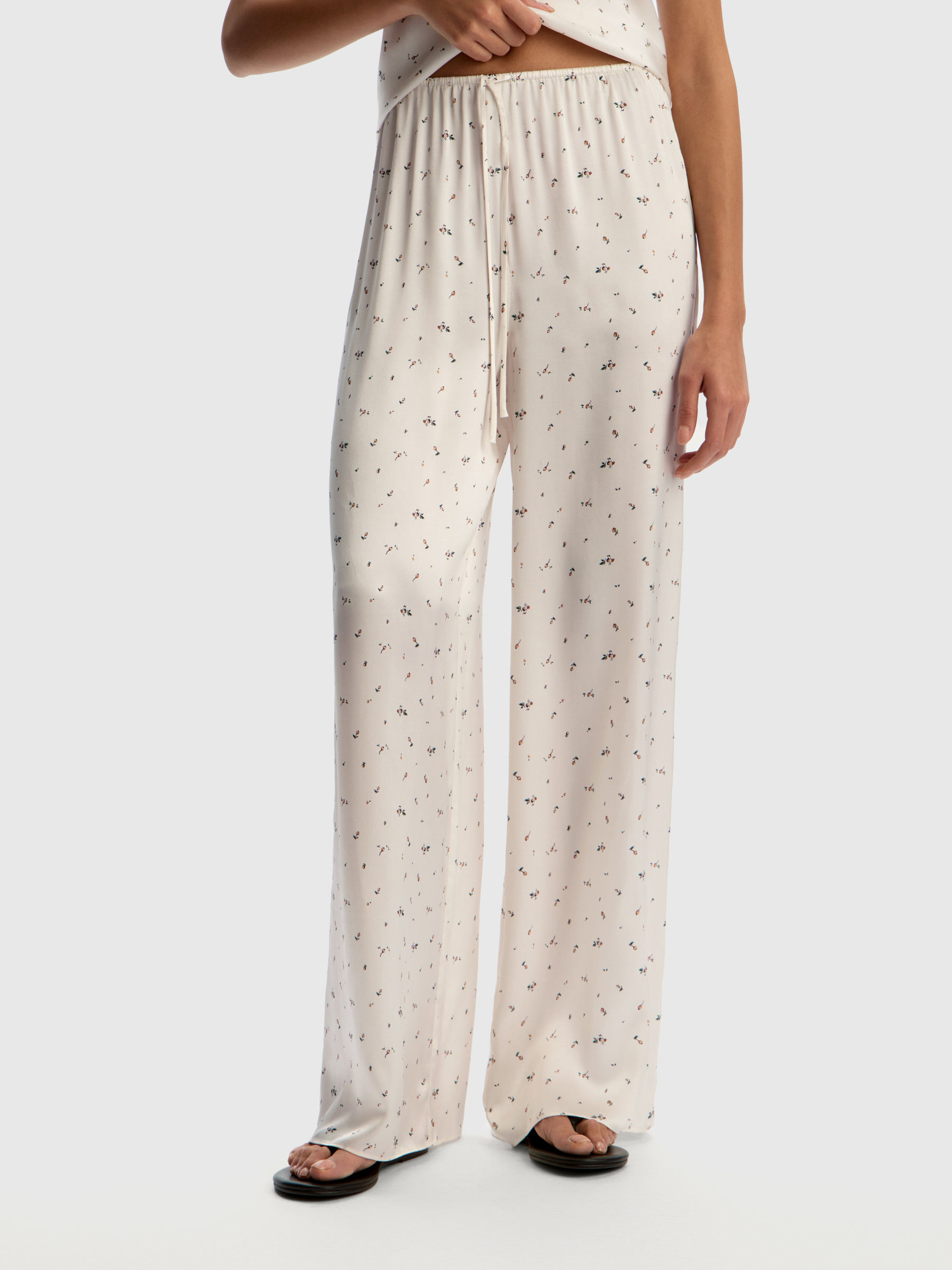 Брюки Home из шелка Mulberry (Молочный с карамельным принтом)