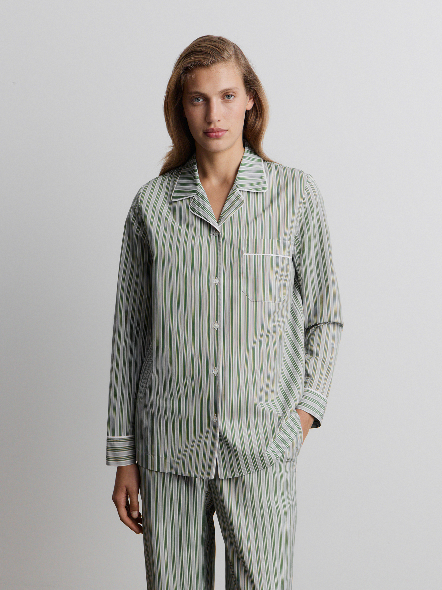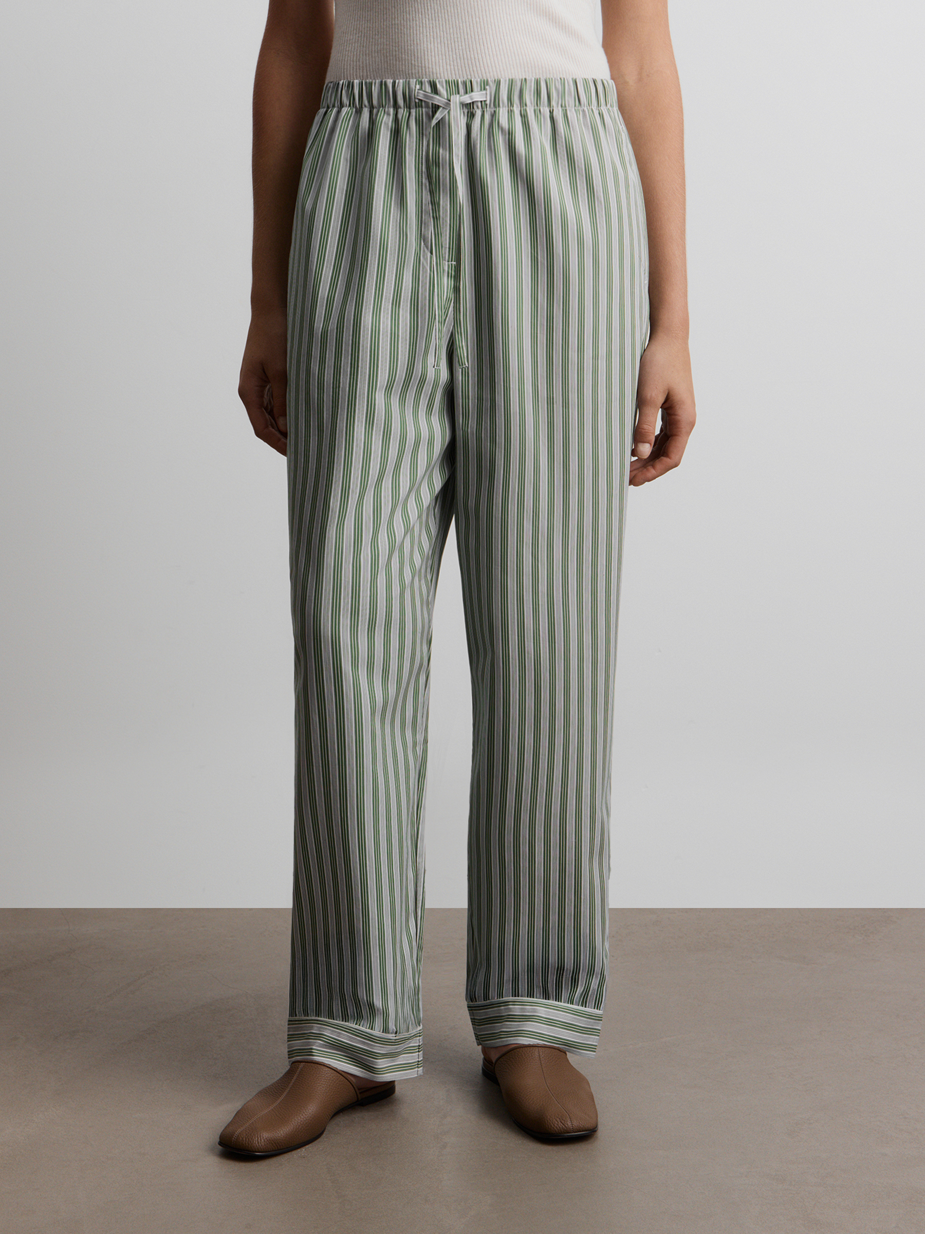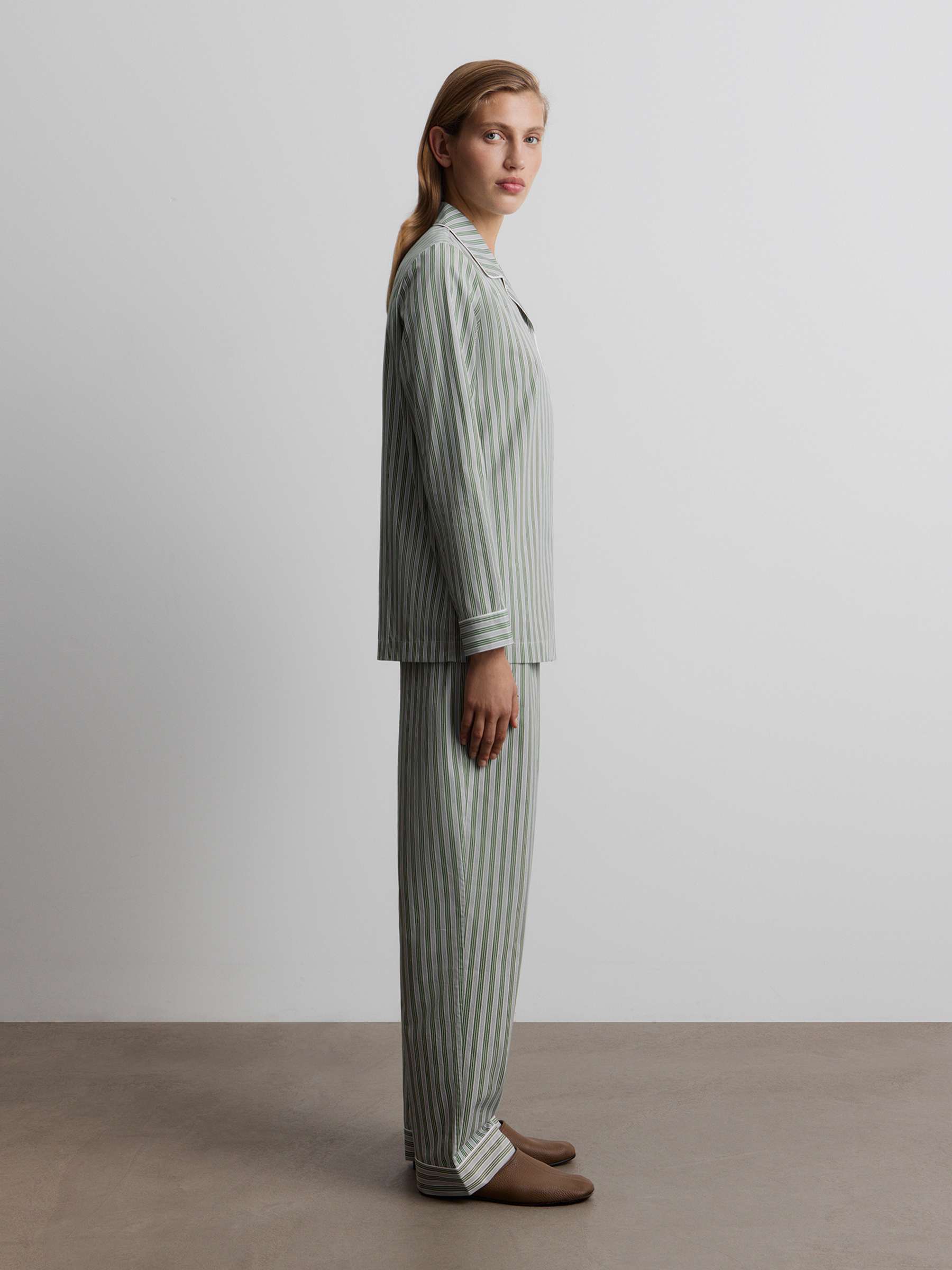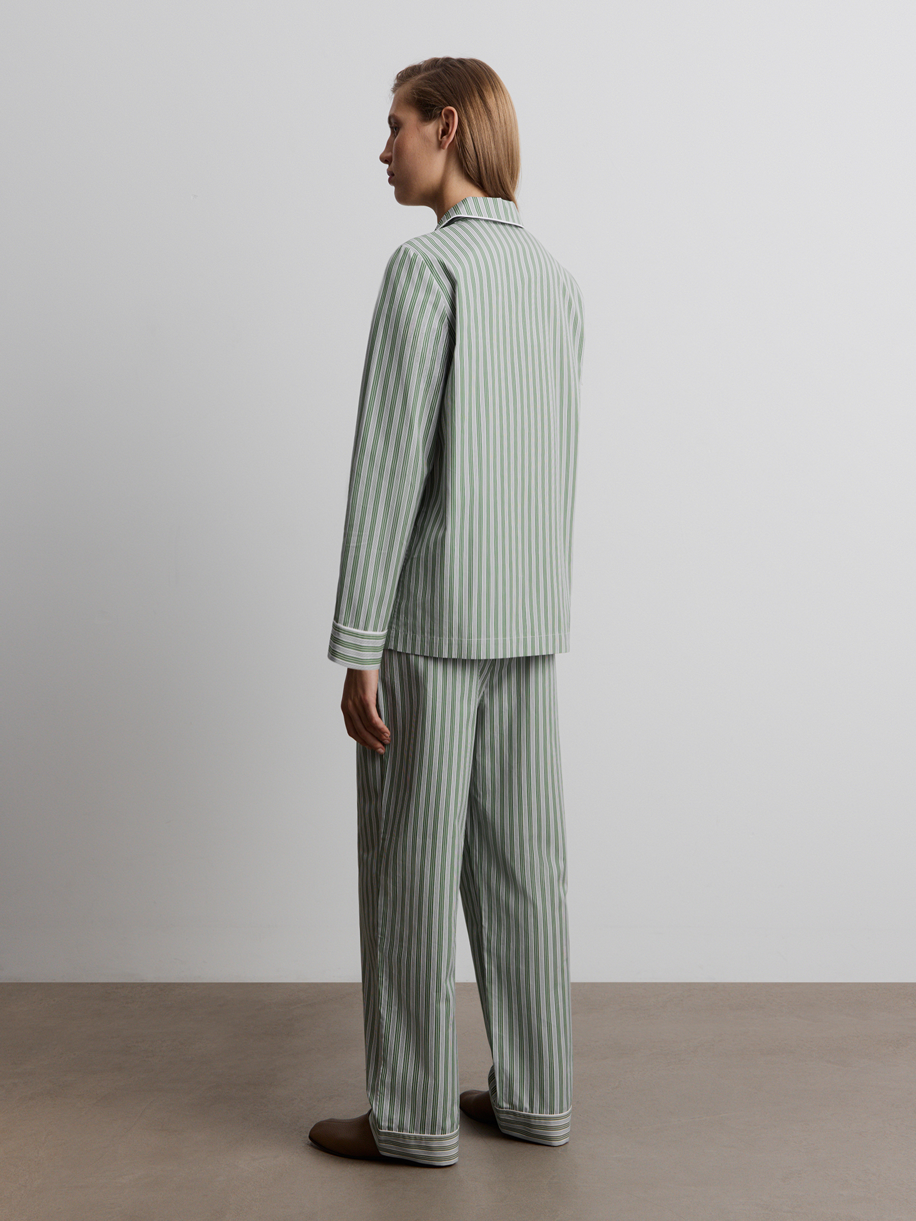 Пижама из хлопка (Зеленый в белую полоску)