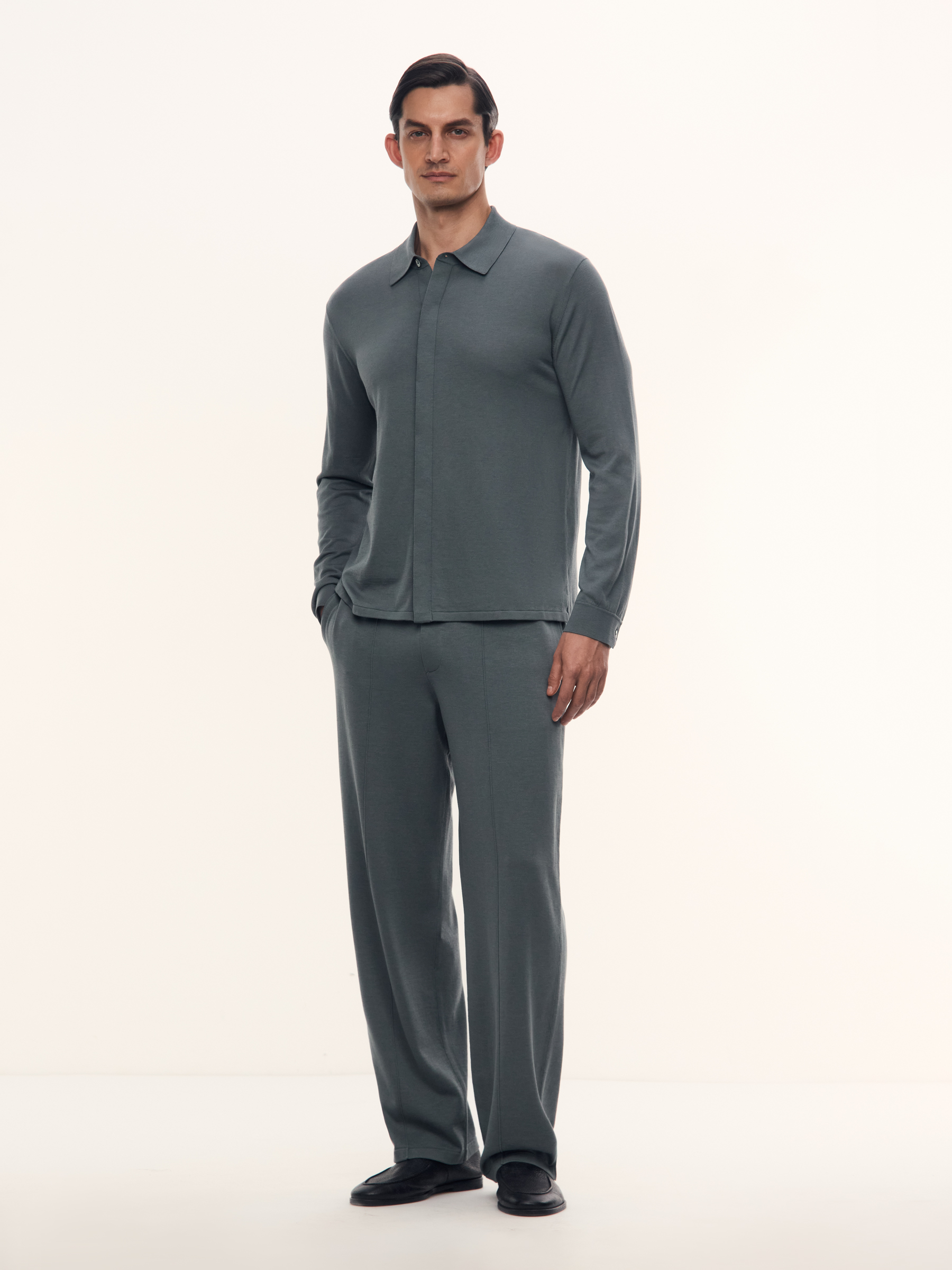 Рубашка Lumen из шелка и хлопка (Серо-зеленый)