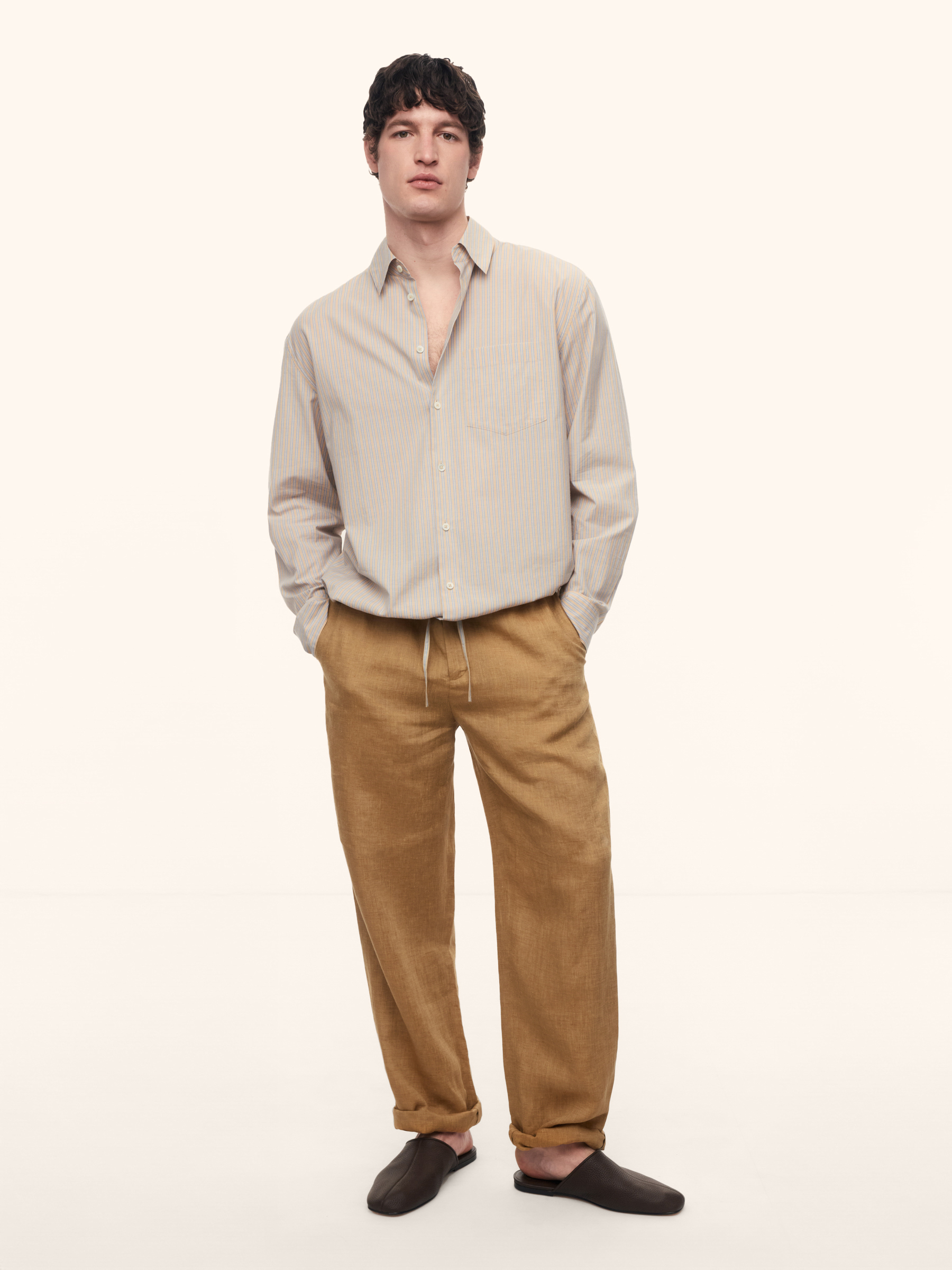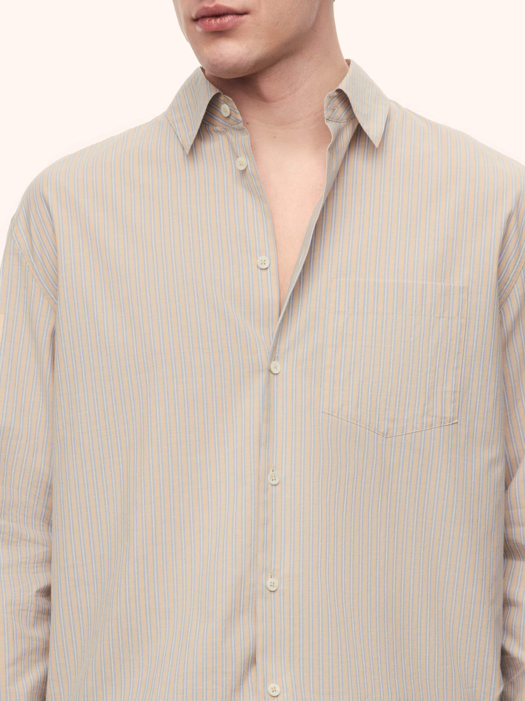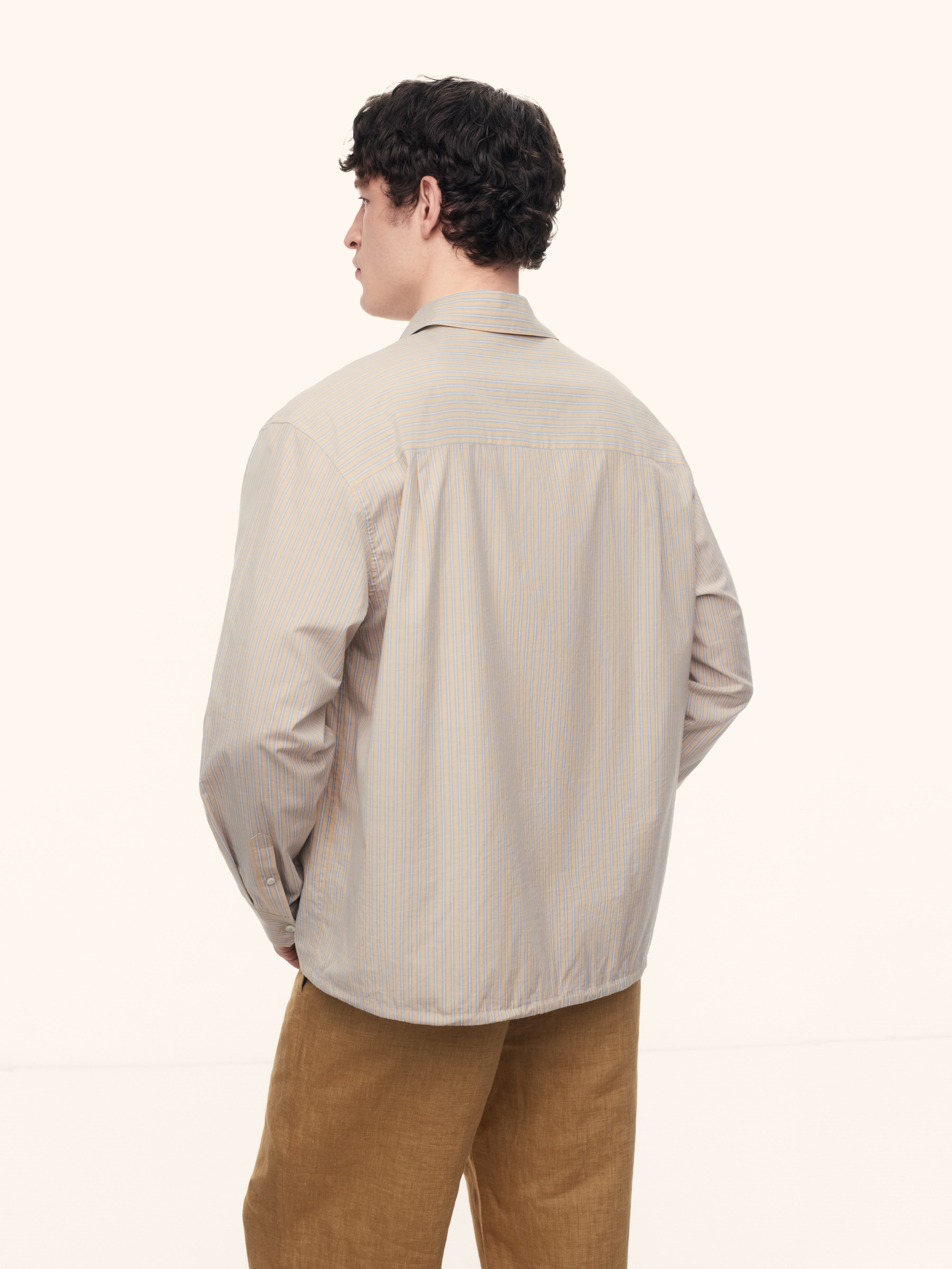 Рубашка Okinawa из хлопка и шелка (Бежевый в синюю полоску)