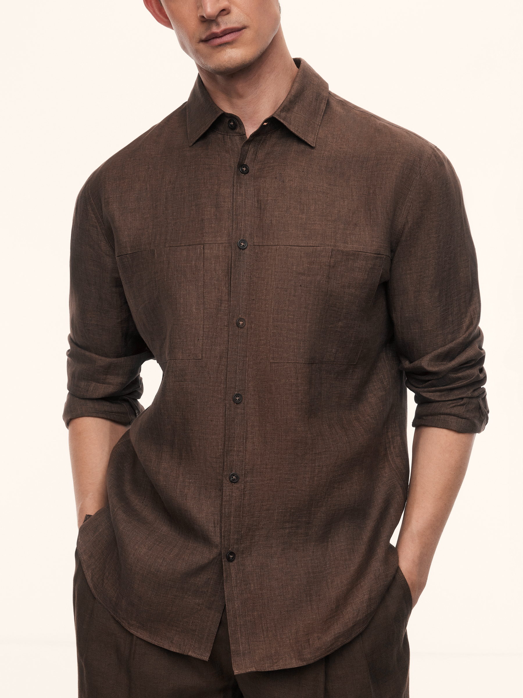 Рубашка Cortado из тонкого льна (Горький шоколад)