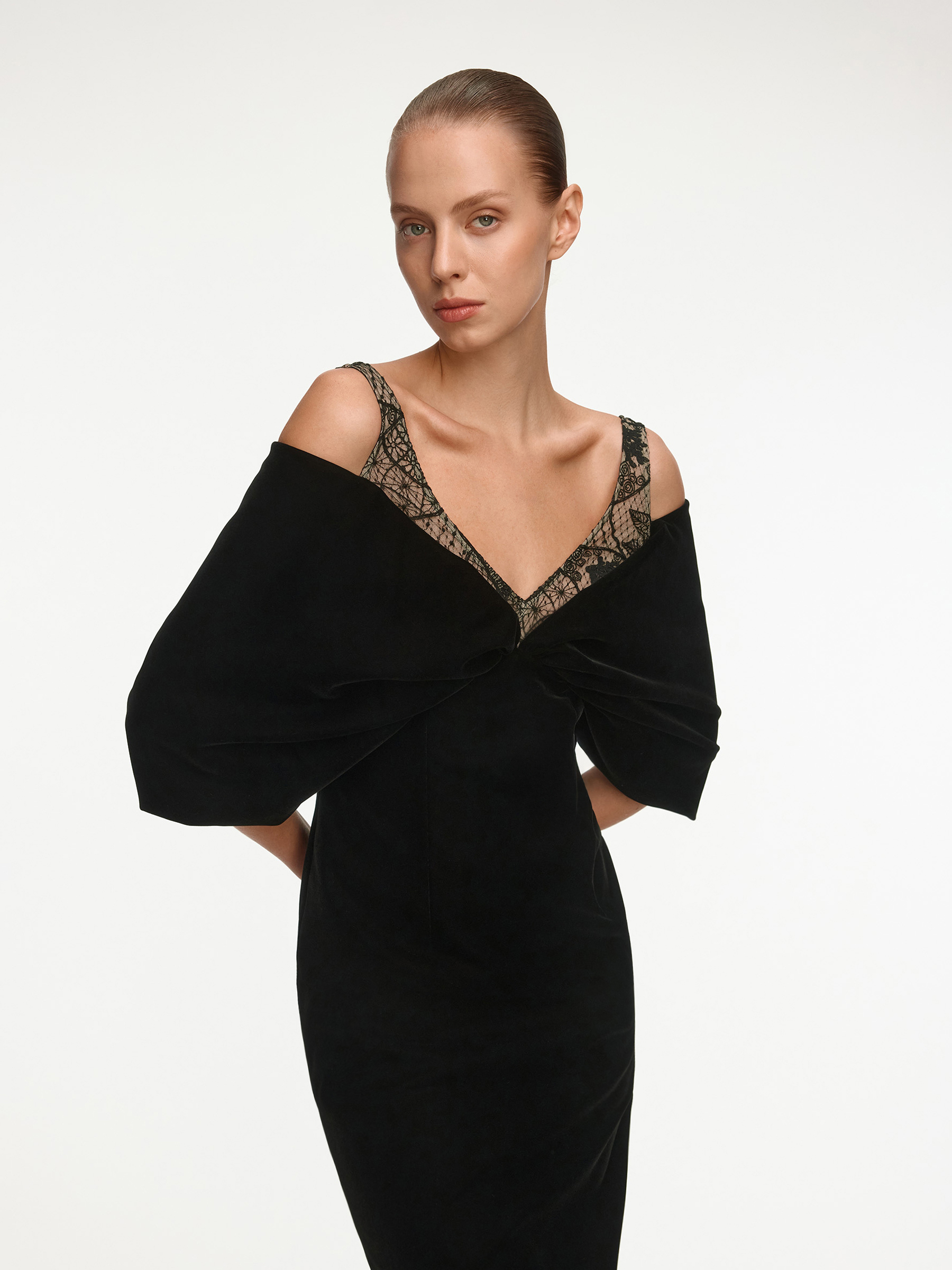 Платье Bow из бархата (Черный)