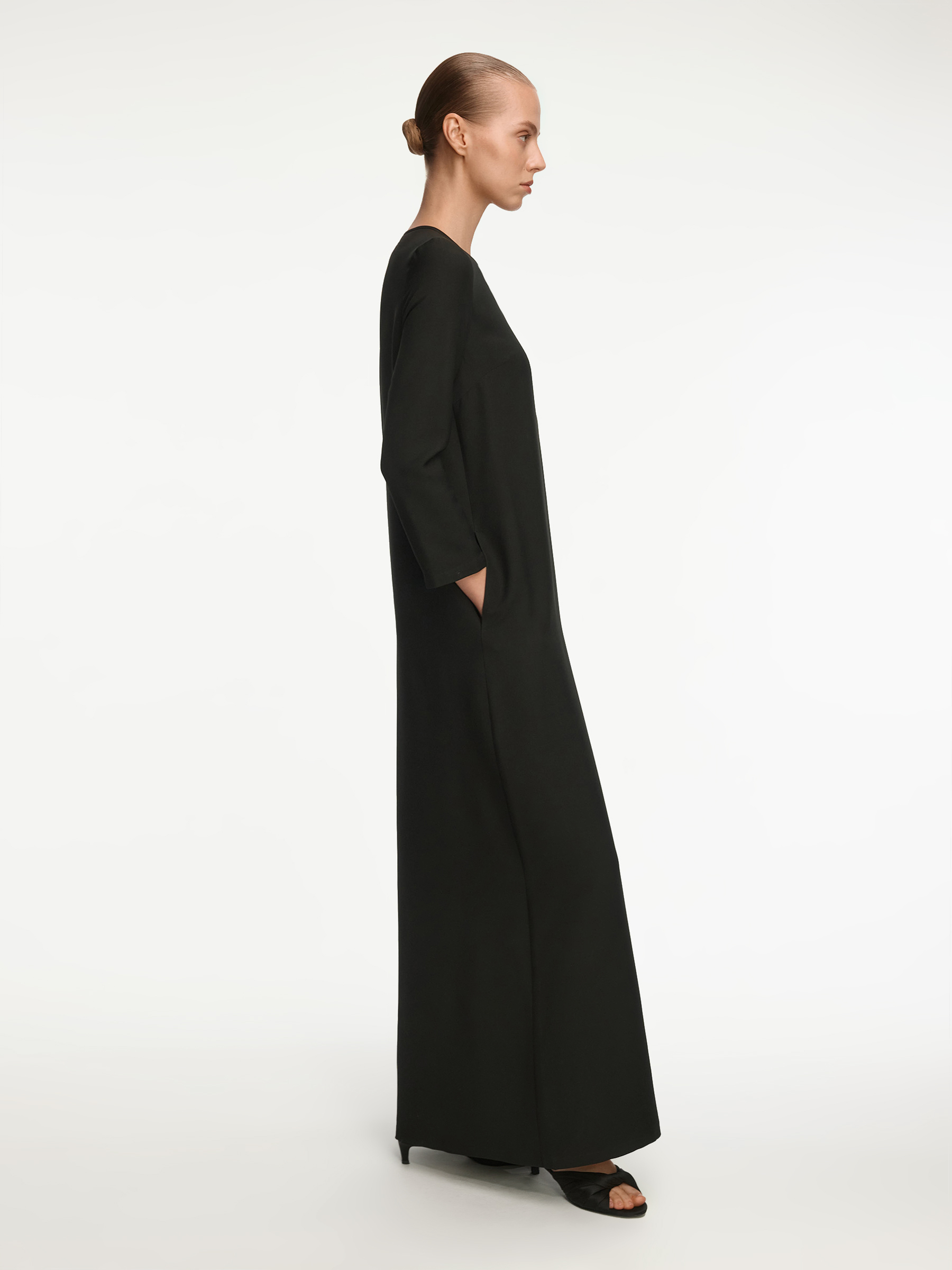 Платье из тонкой шерсти и шелка (Черный)
