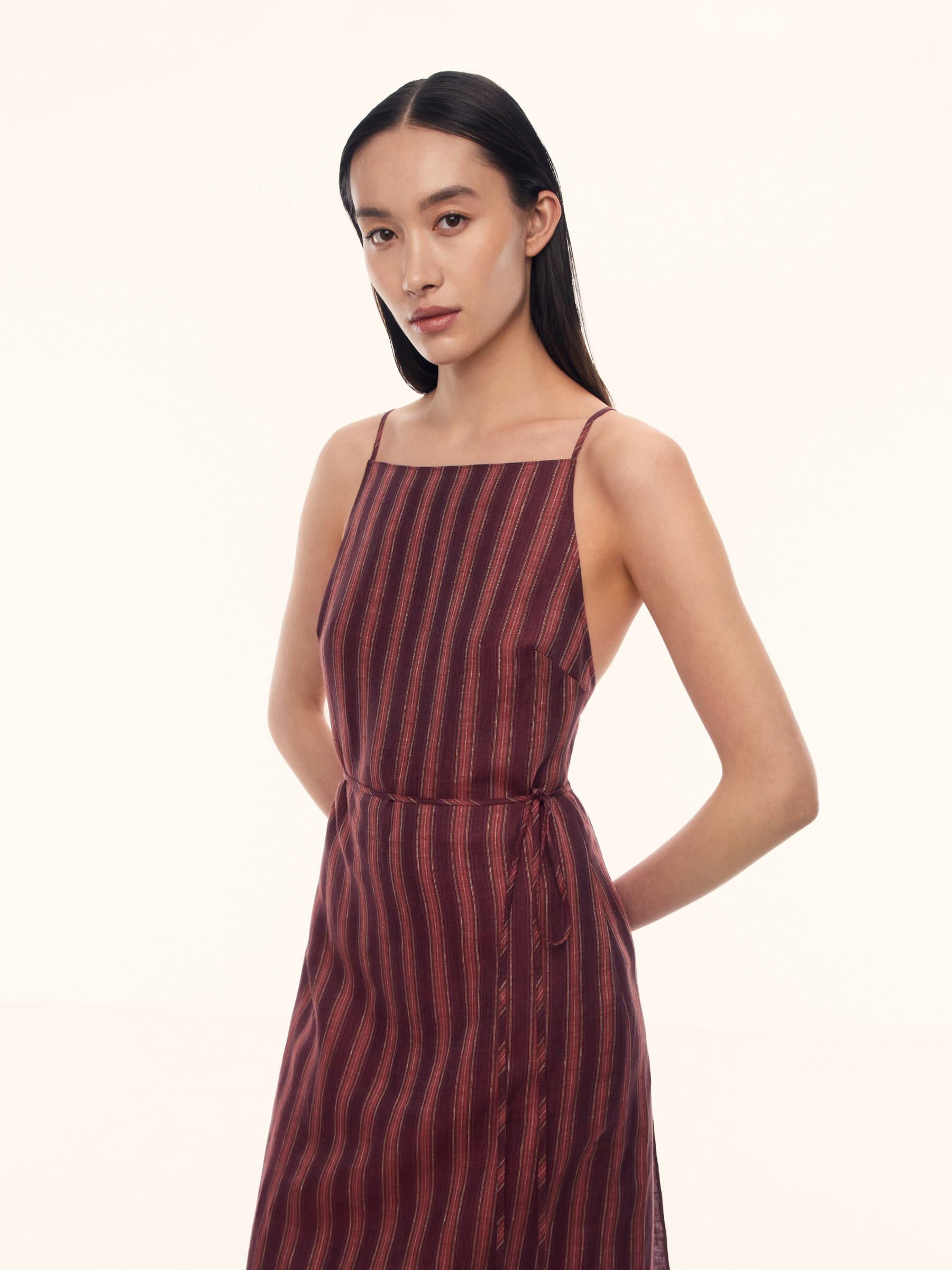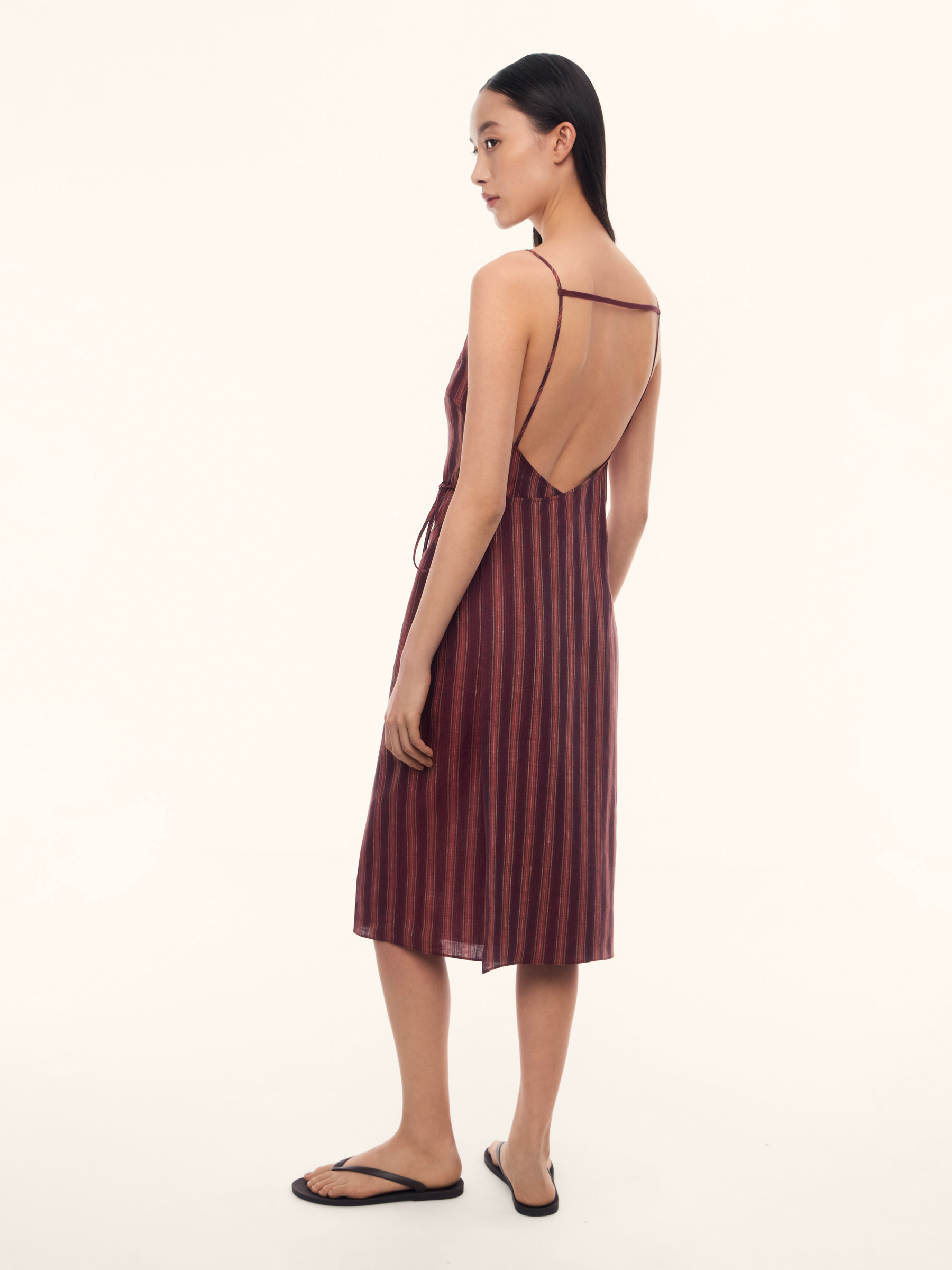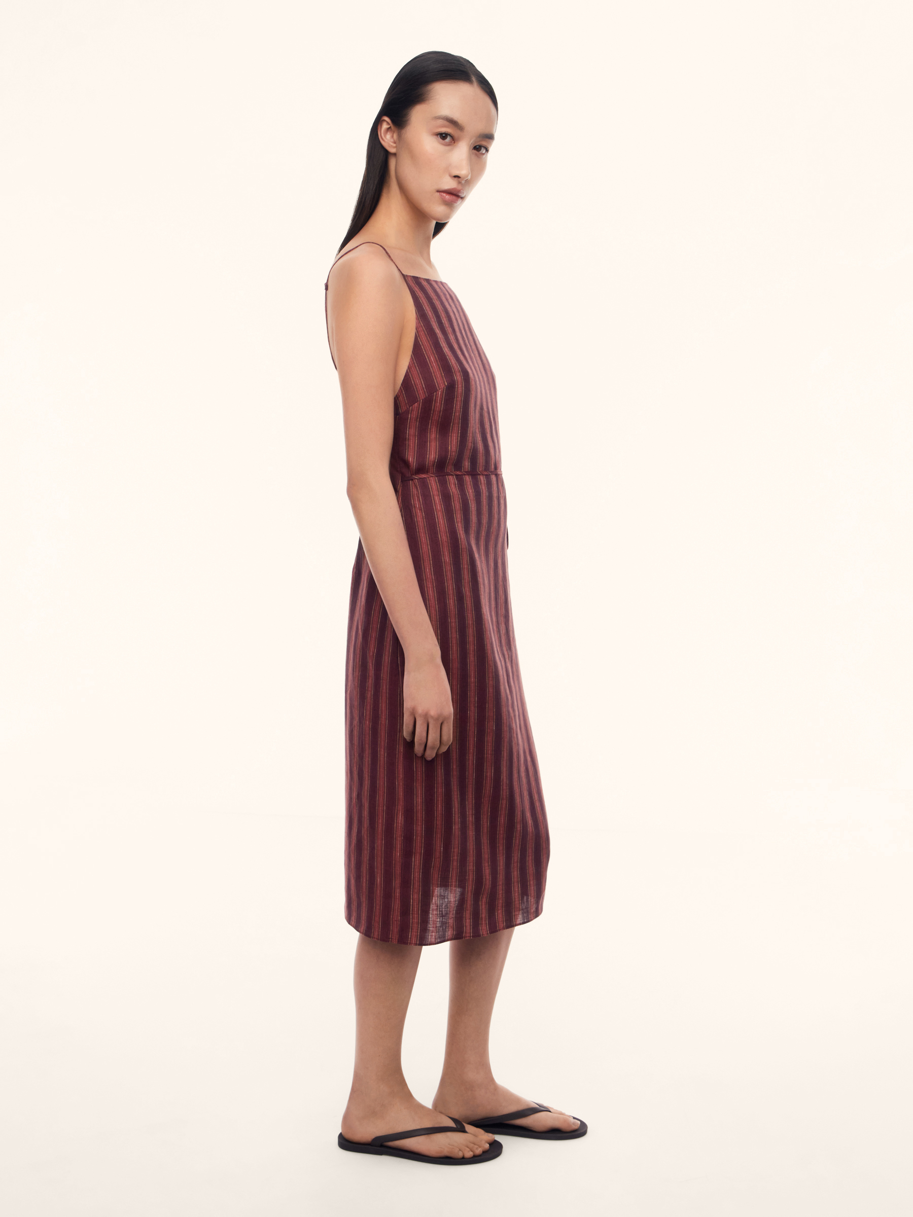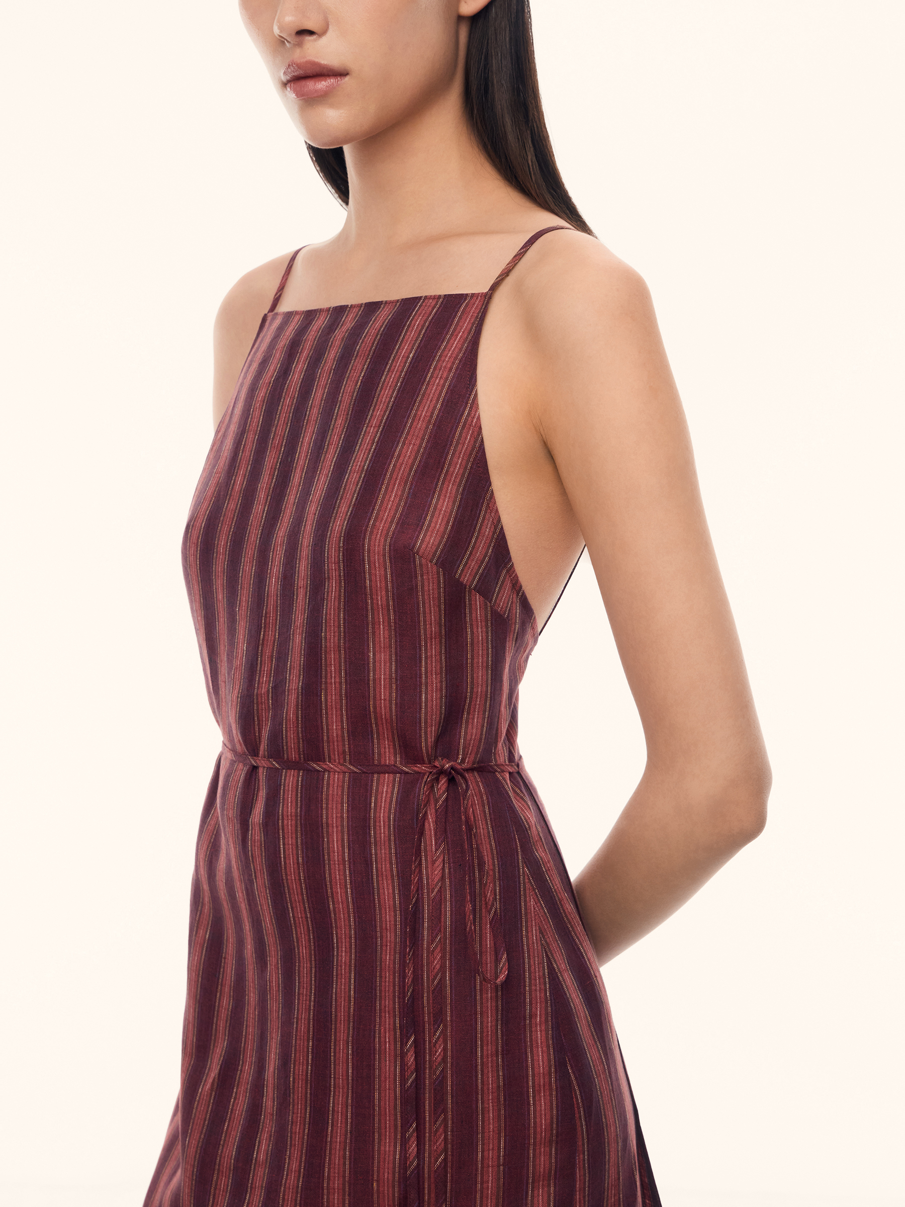 Платье Sorbet из тонкого льна (Винный в малиновую полоску)