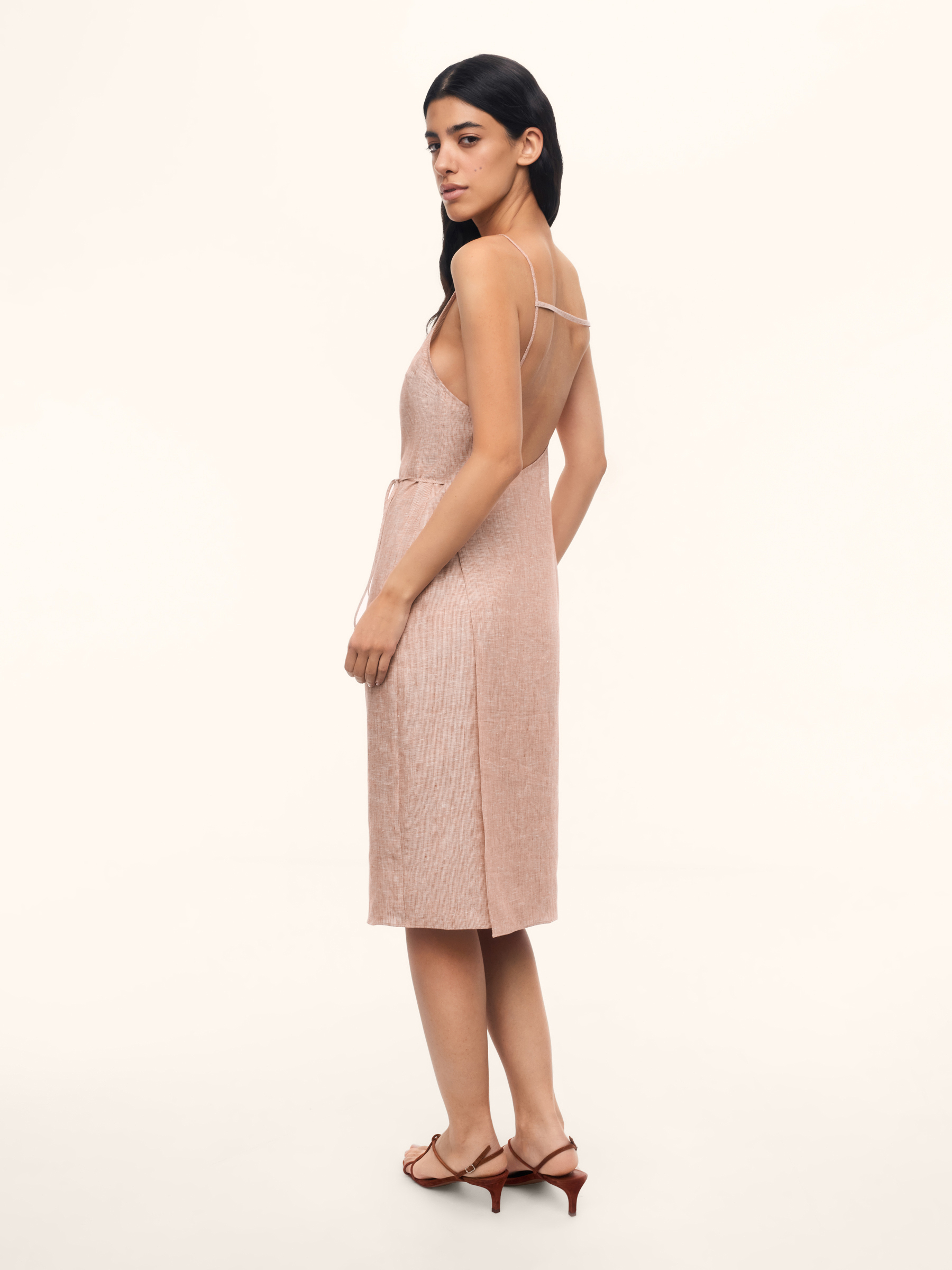 Платье Gelato из тонкого льна (Кирпичный в белую полоску)