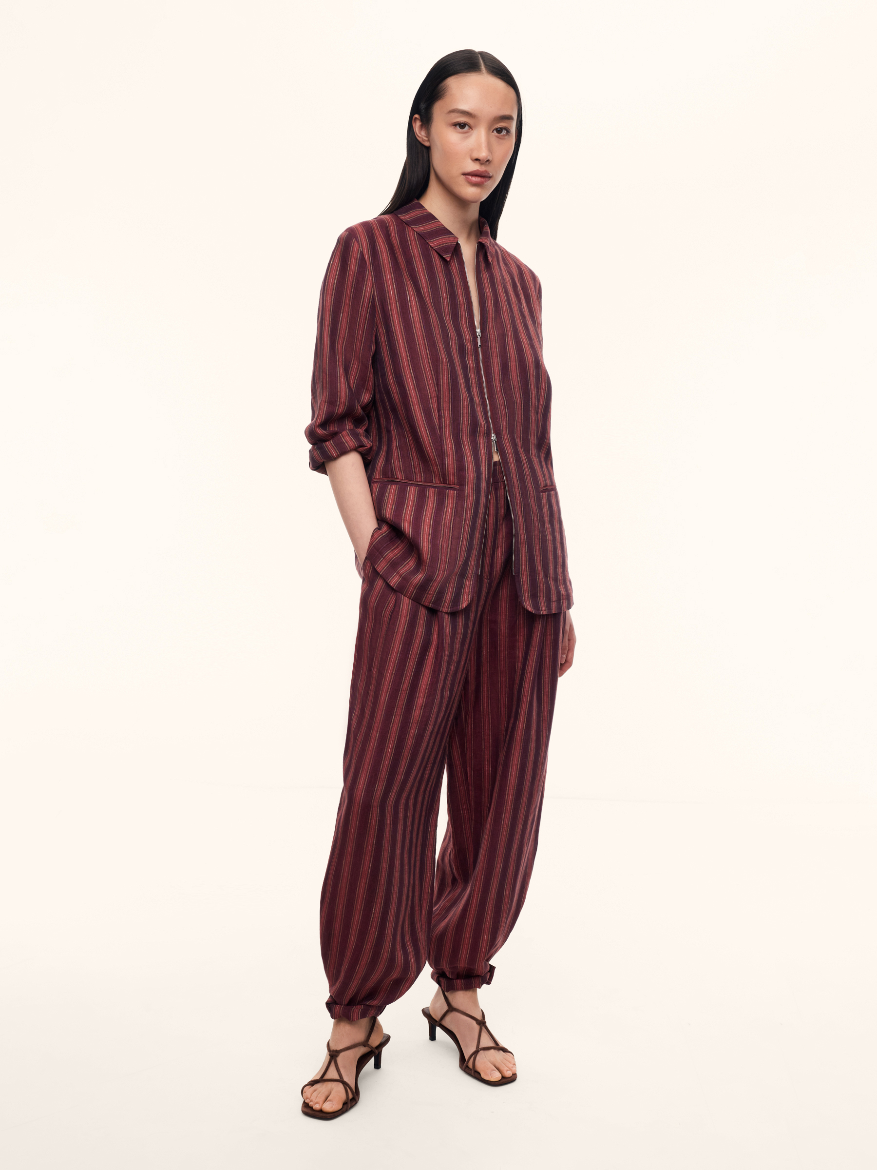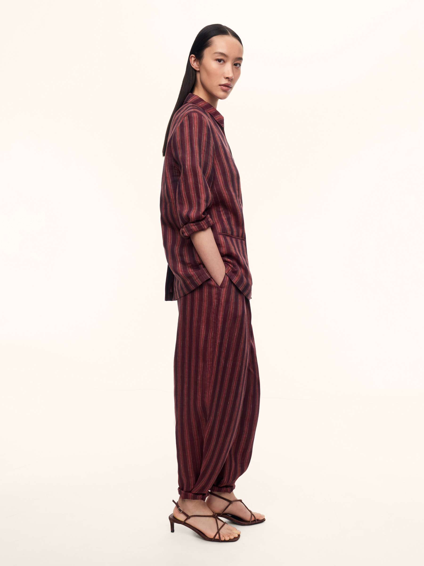 Рубашка-жакет Sorbet (Винный в малиновую полоску)