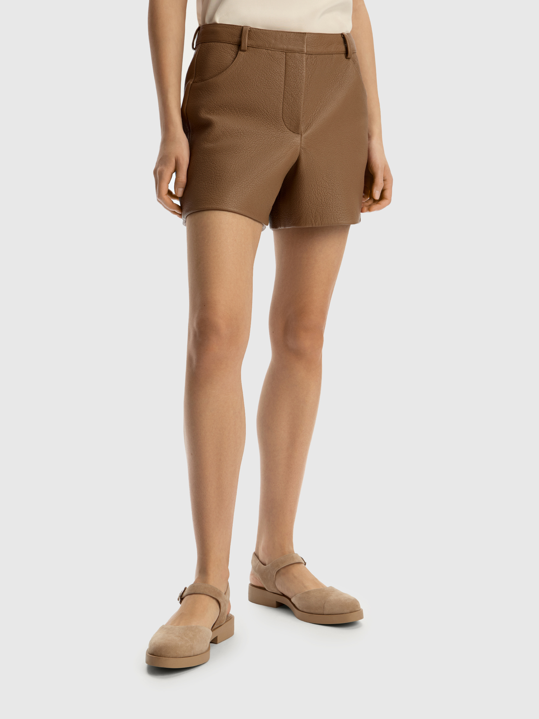 Шорты Grain из фактурной кожи (Кофе с молоком)