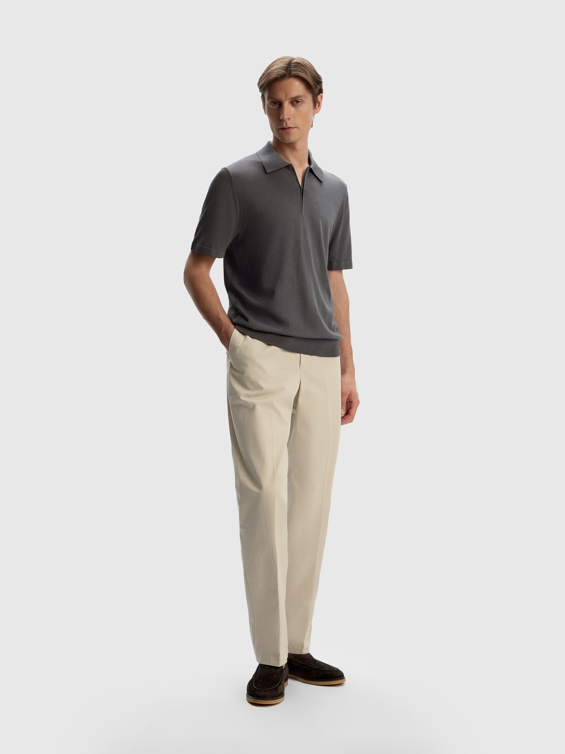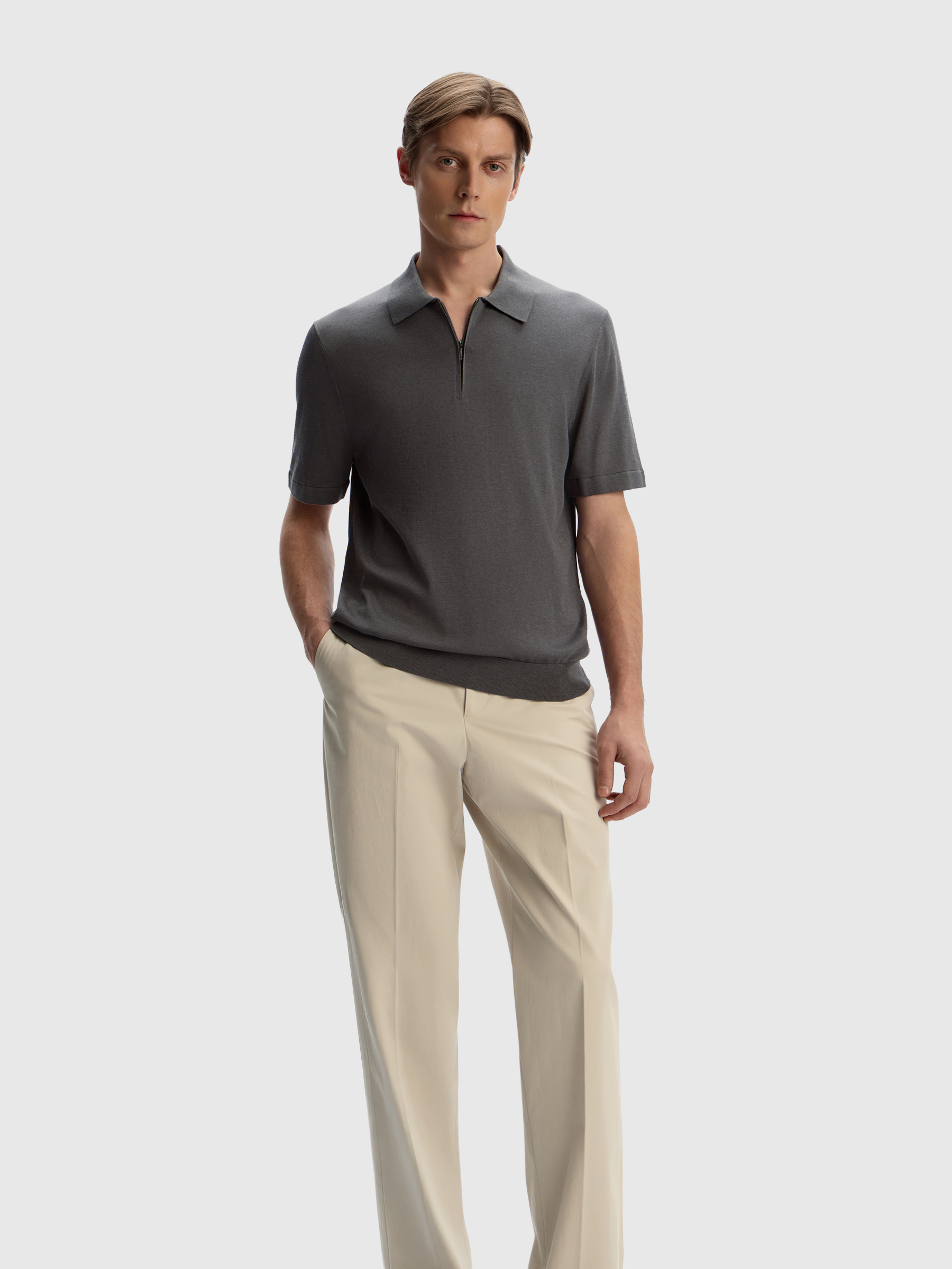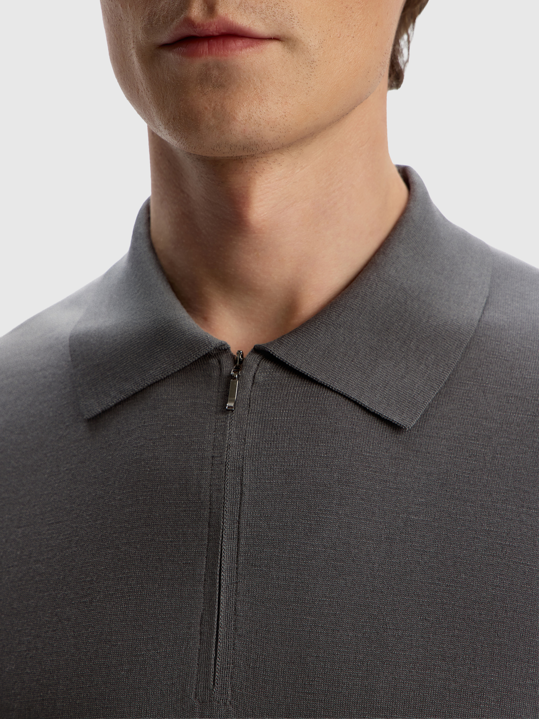 Джемпер-поло из шелка и хлопка (Серый)