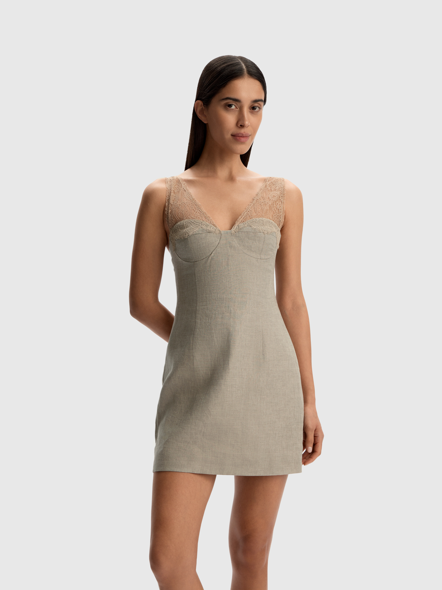 Платье из тонкого льна и кружева (Кофе с молоком)