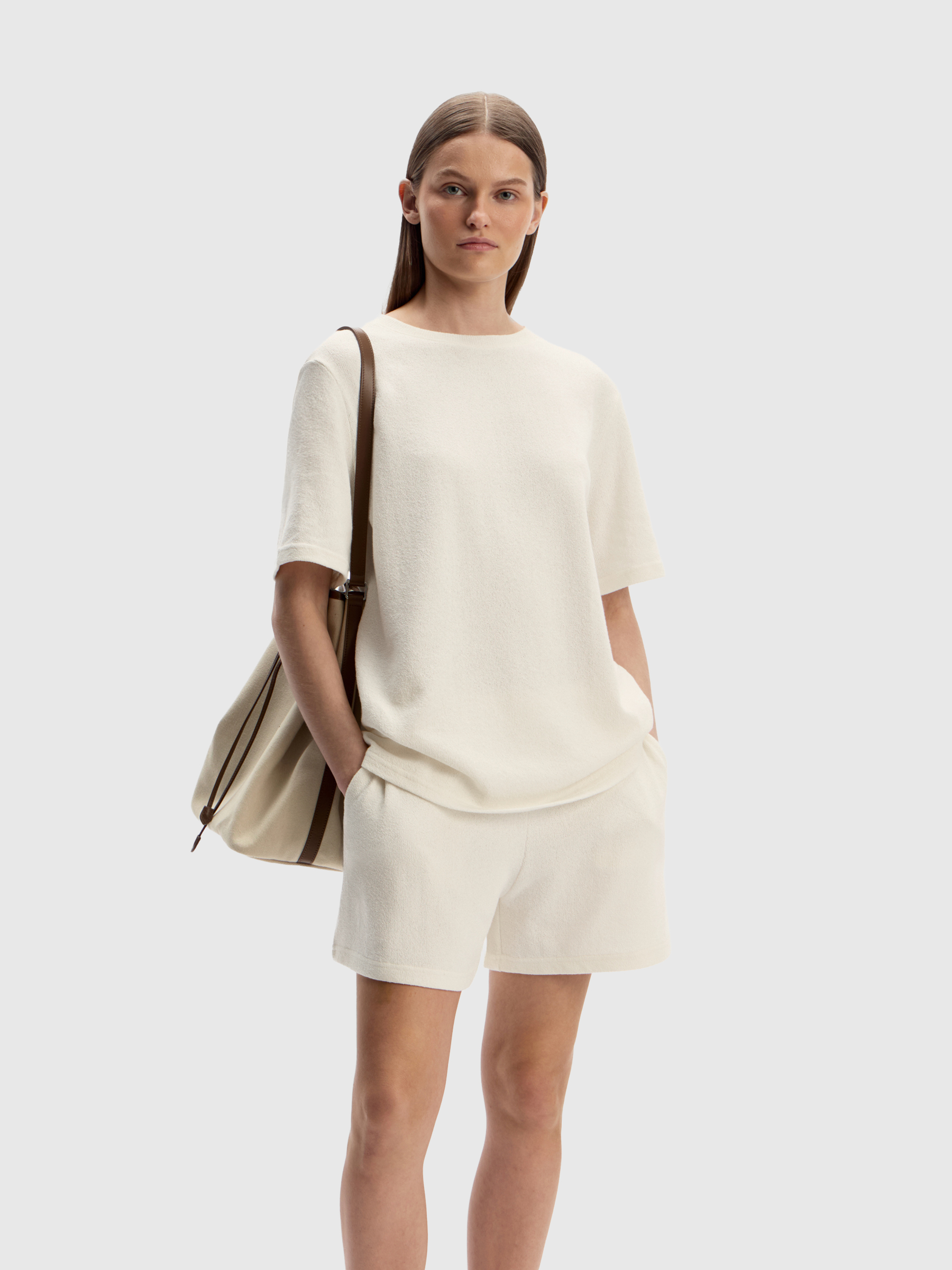 Шорты из фактурного трикотажа (Молочный)