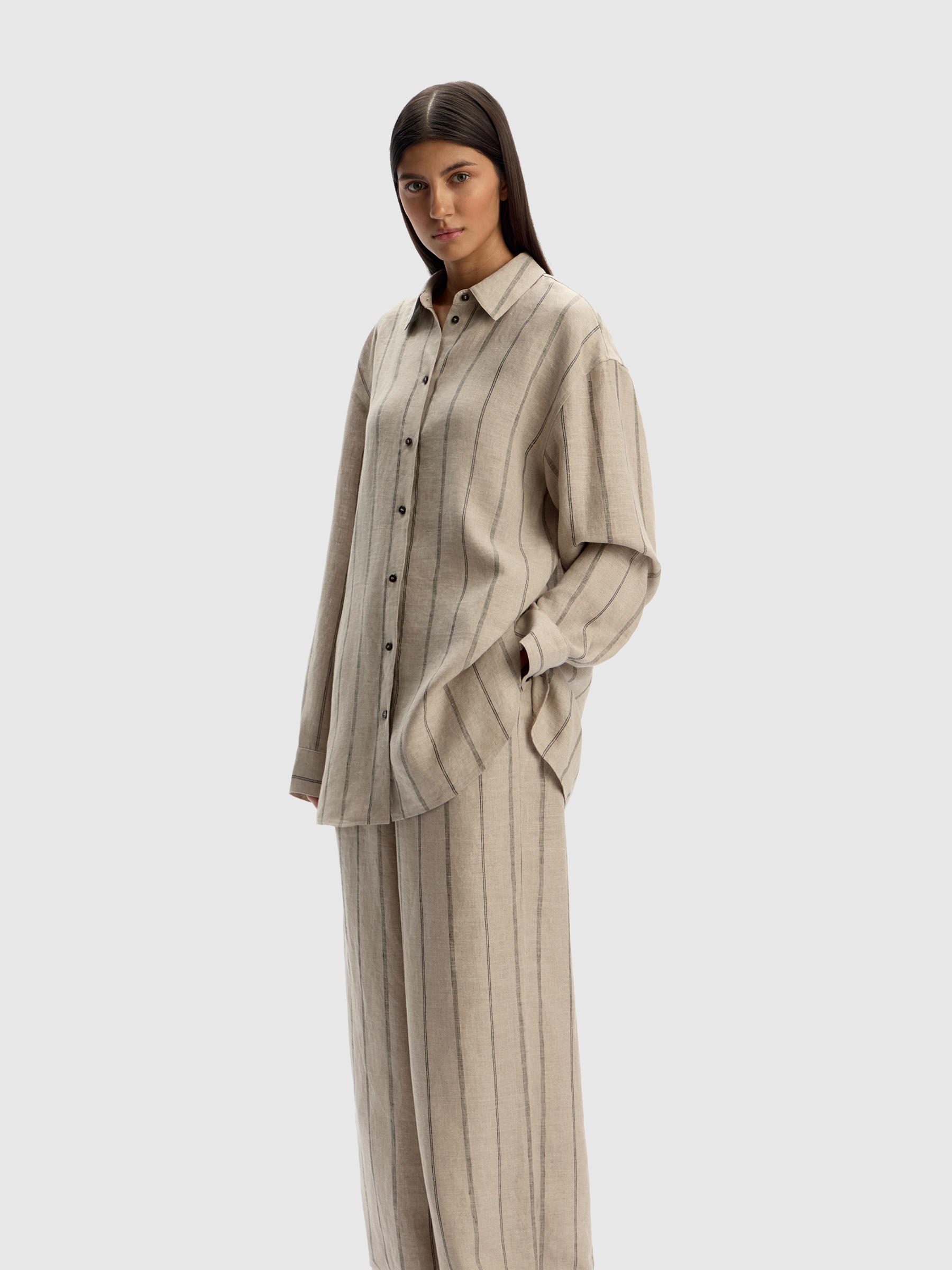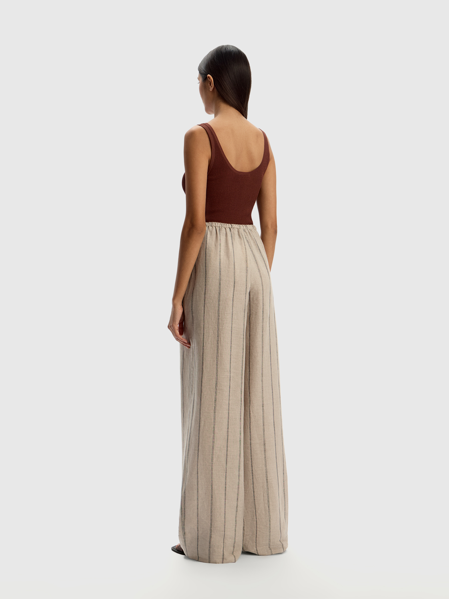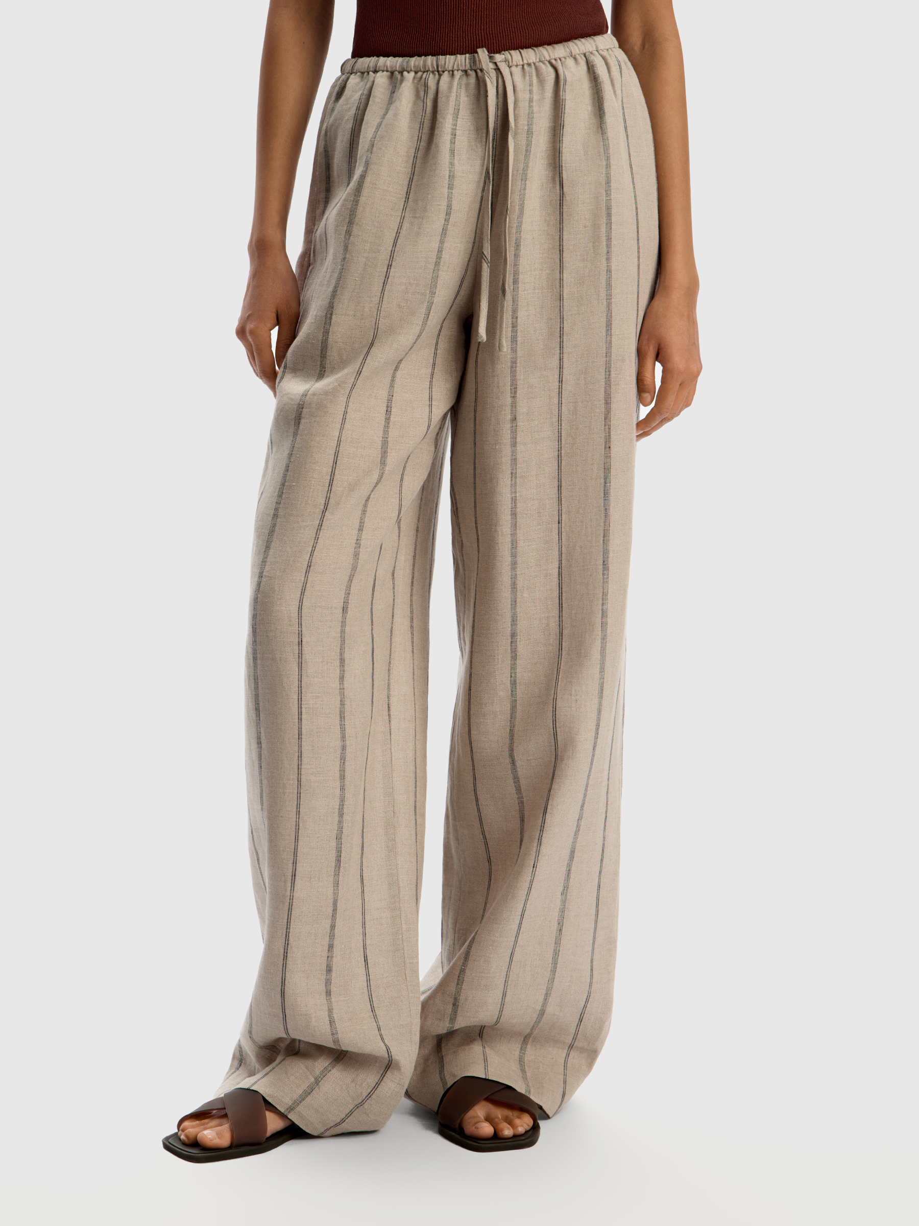 Брюки из тонкого льна (Серо-бежевый в черную полоску)