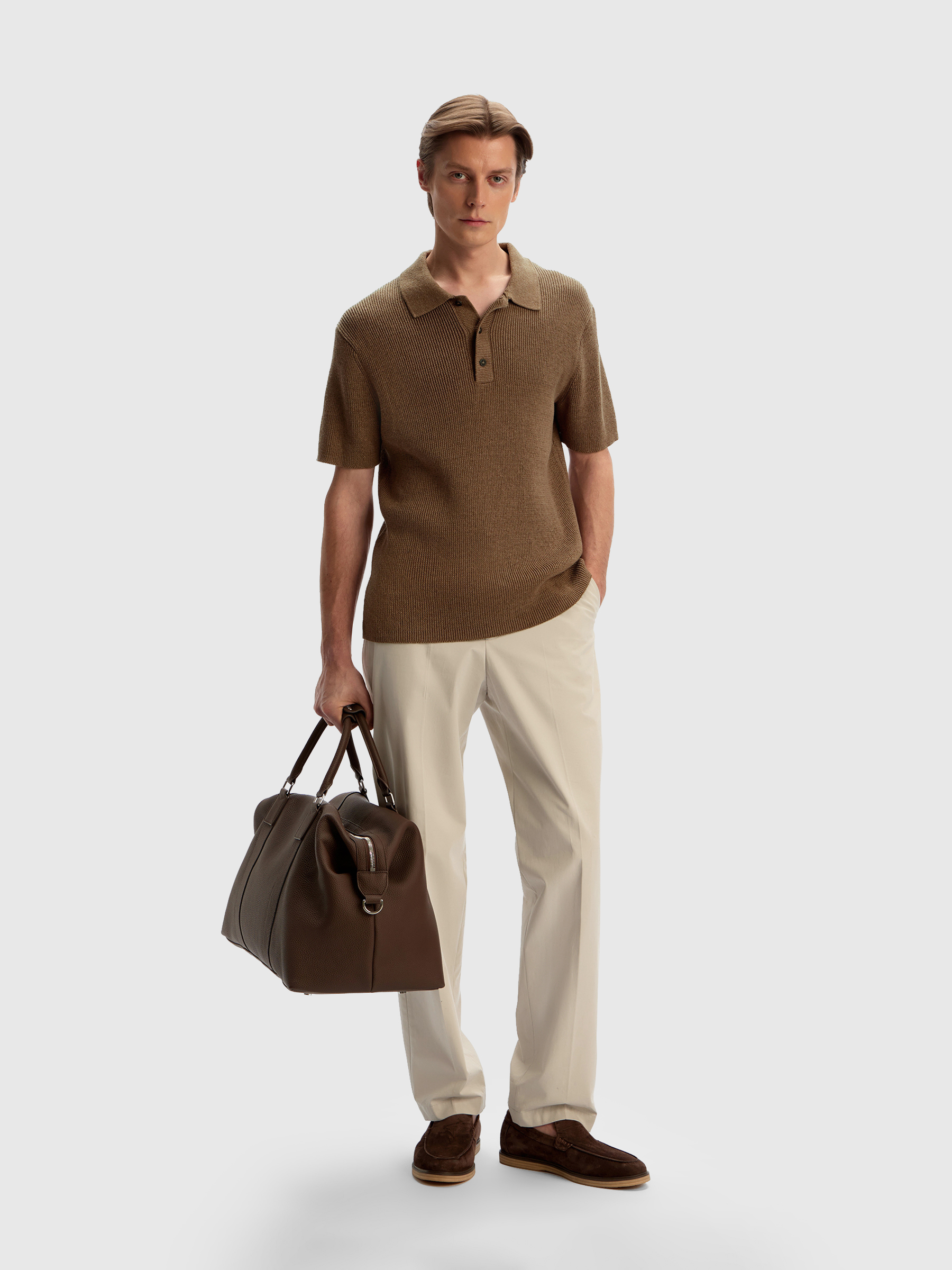 Поло из хлопка и льна (Кофе с молоком)