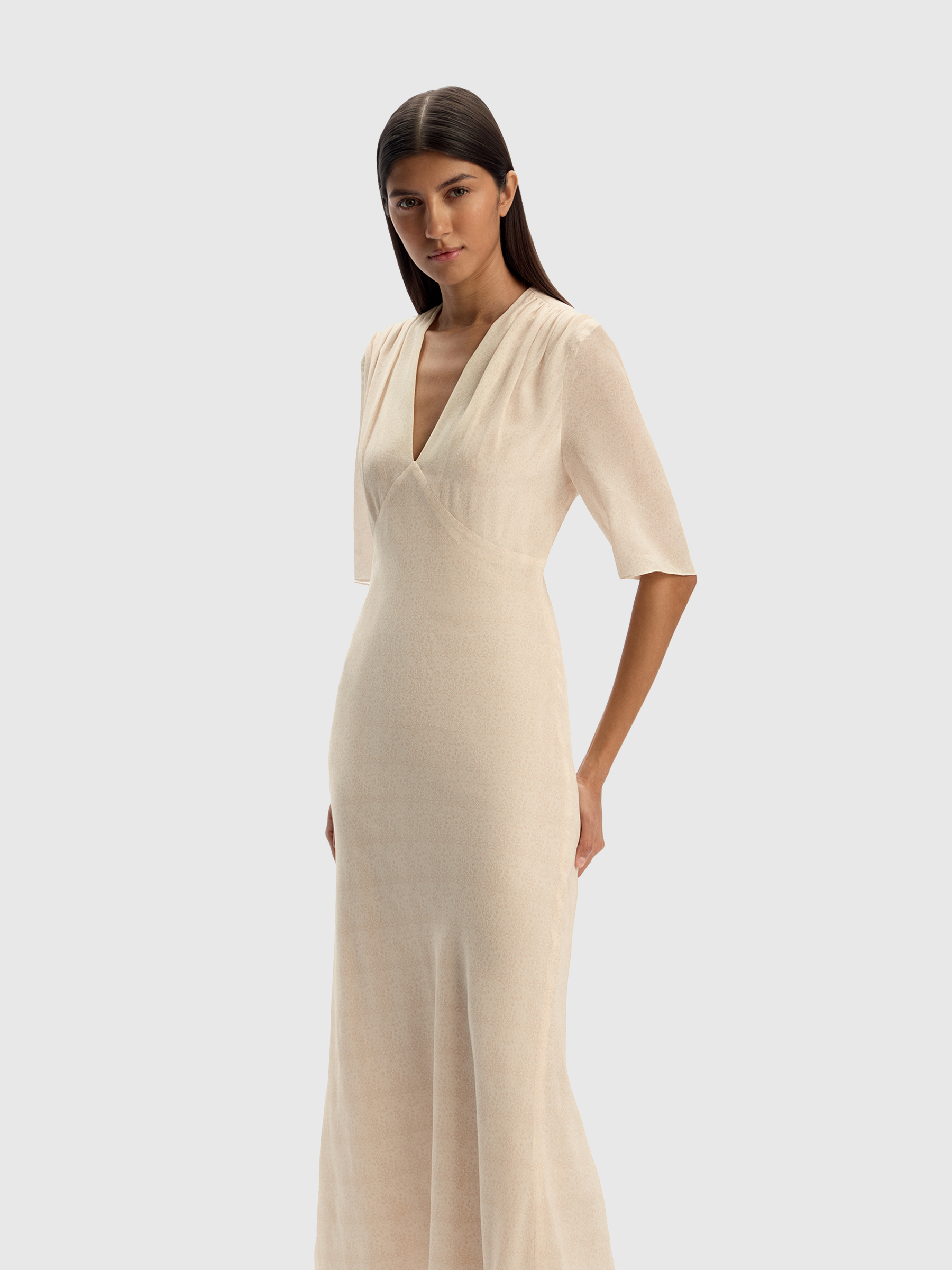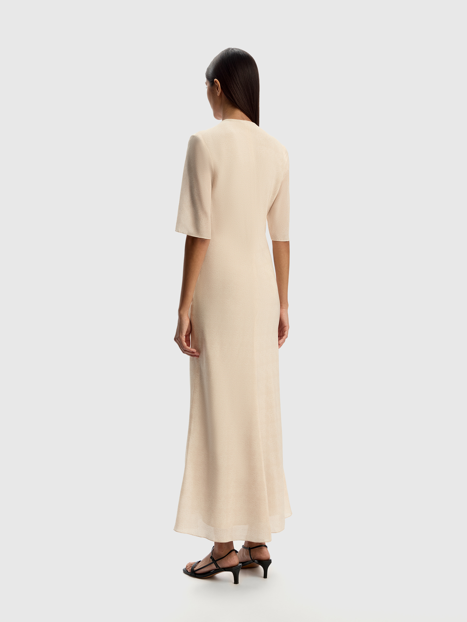 Платье из шелкового шифона (Молочный с кремовым принтом)