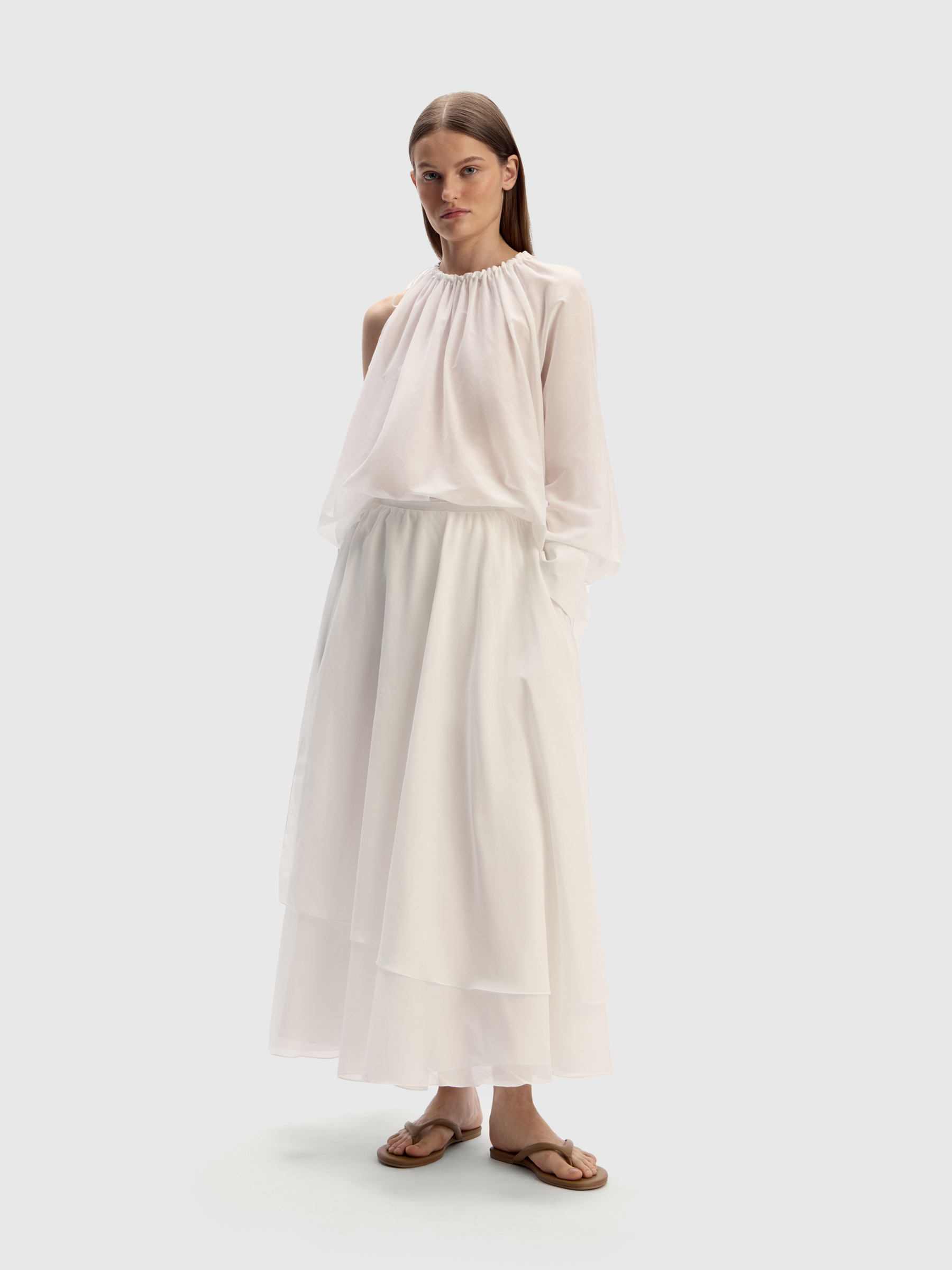 Блузка из хлопка и шелка (Белый)