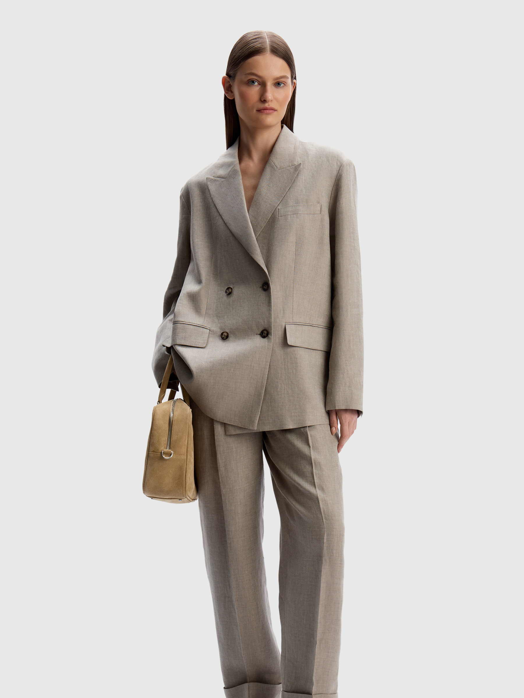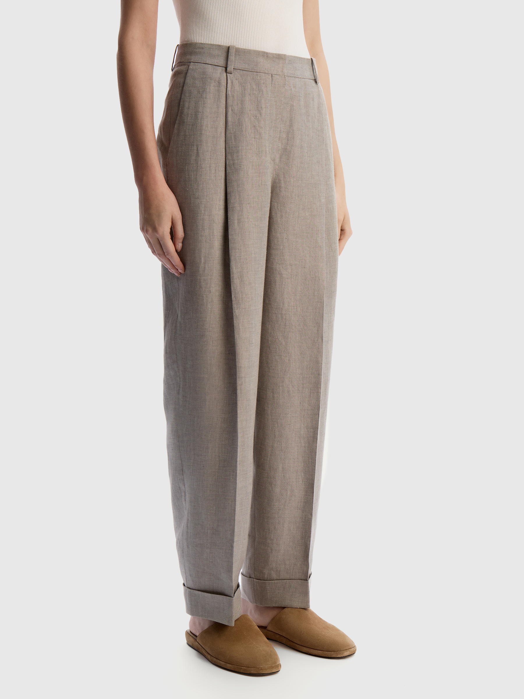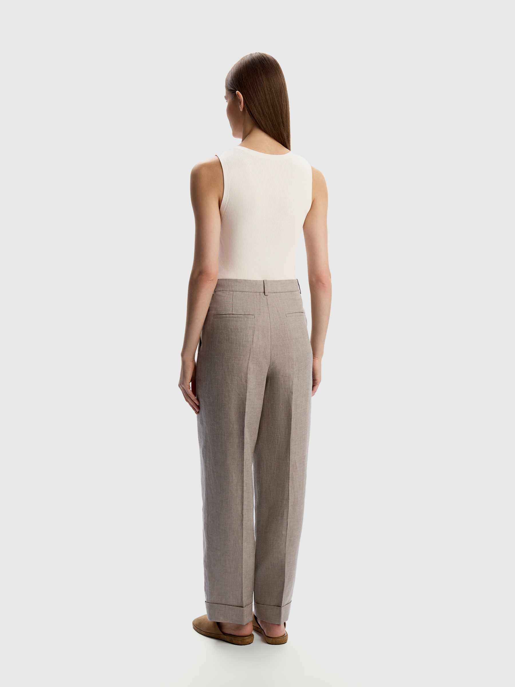 Брюки из плотного льна (Кофе с молоком)