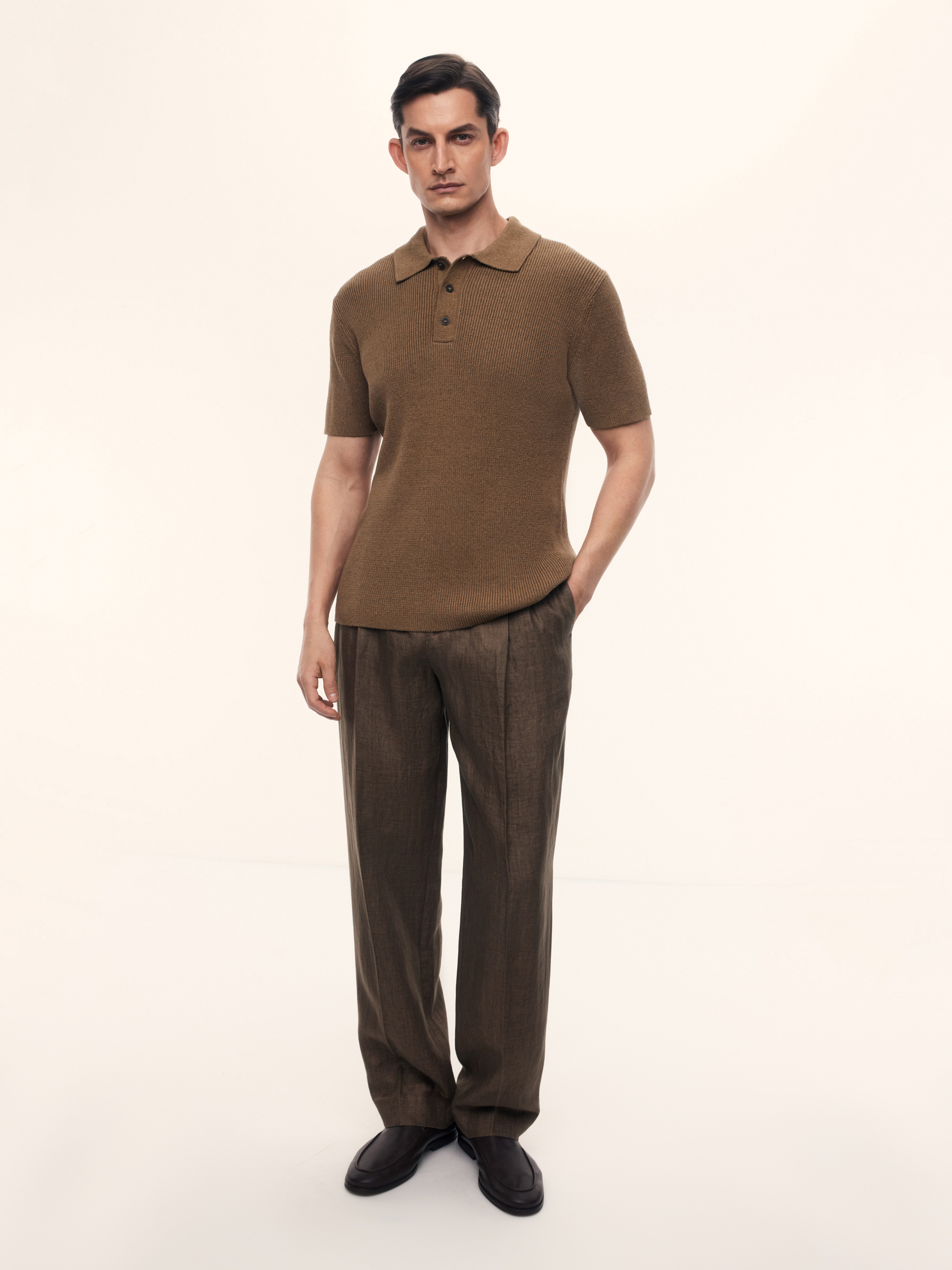 Поло из хлопка и льна (Кофе с молоком)