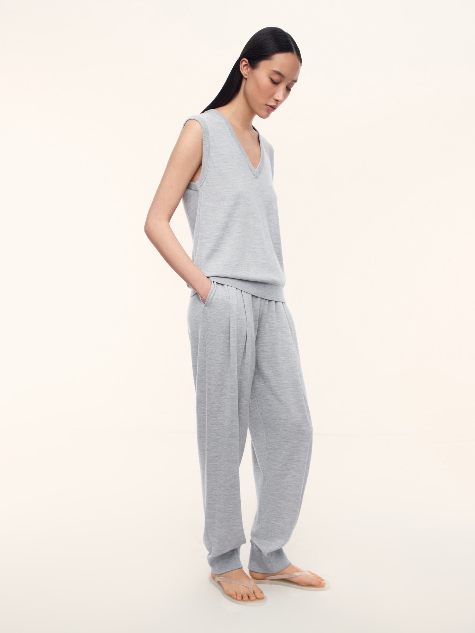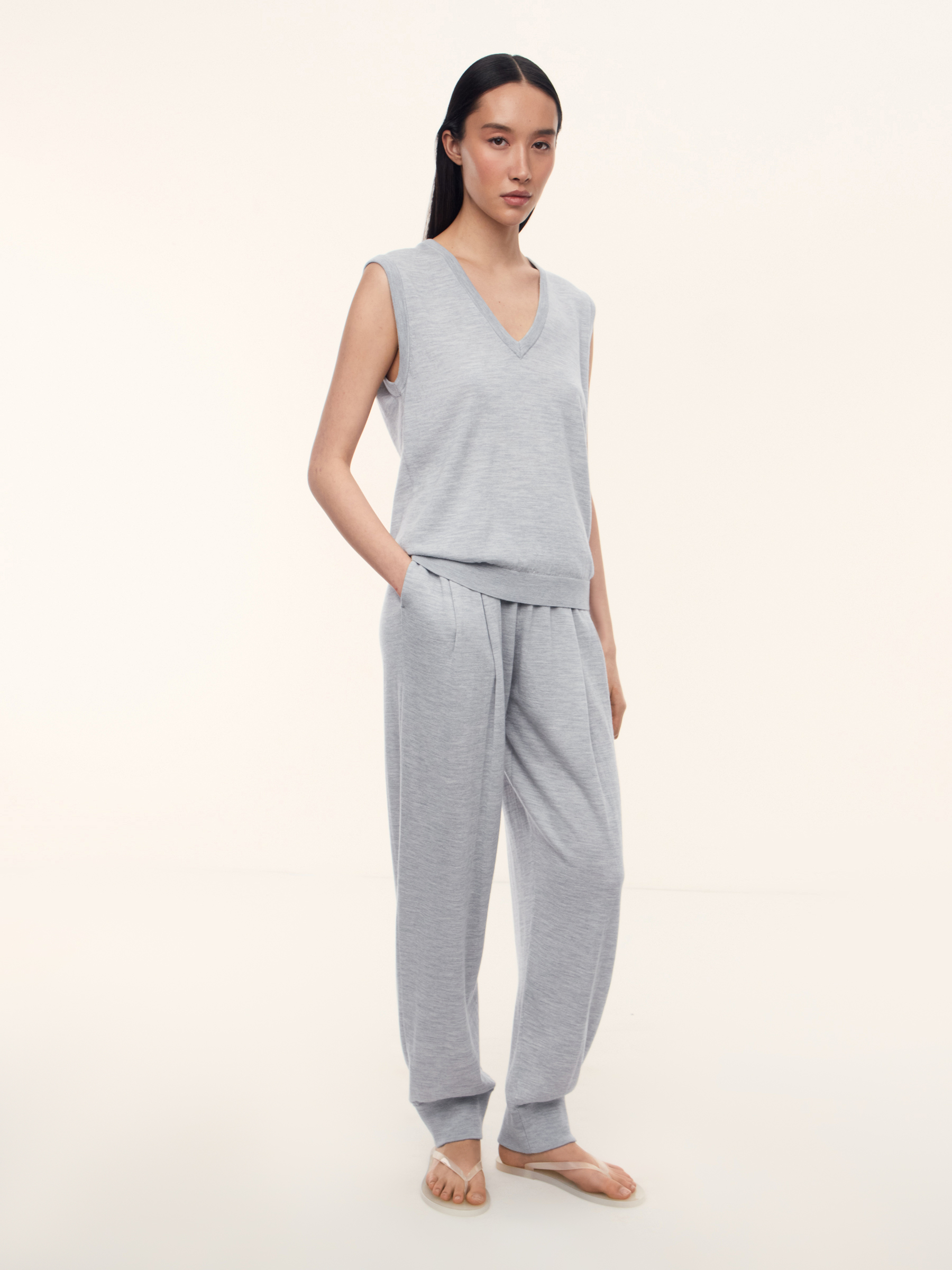 Жилет из шерсти и шелка (Светло-серый)
