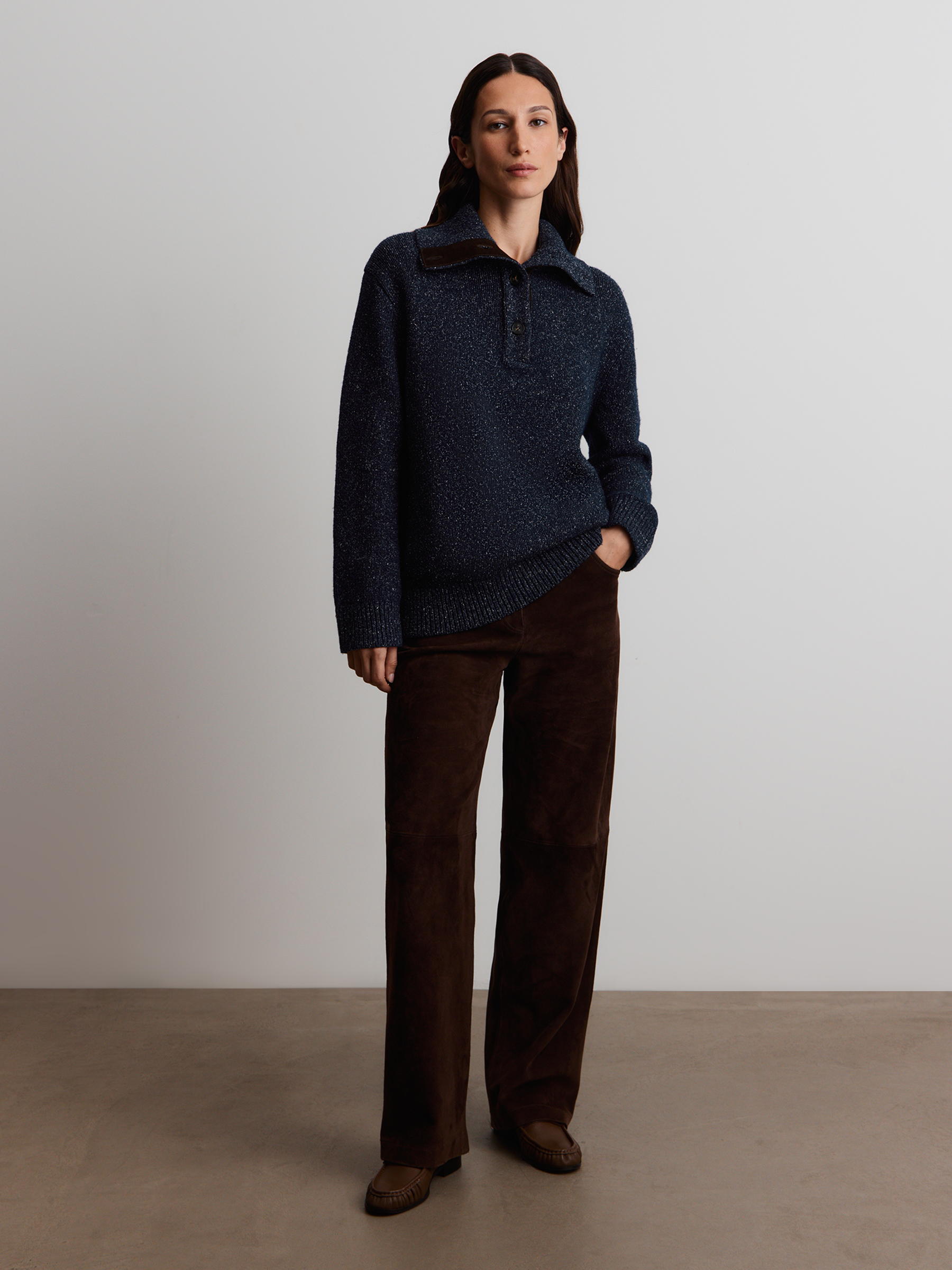 Джемпер из шерсти и шелка (Темно-синий)