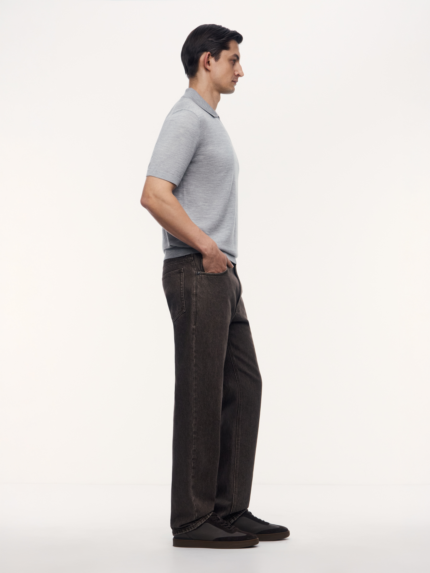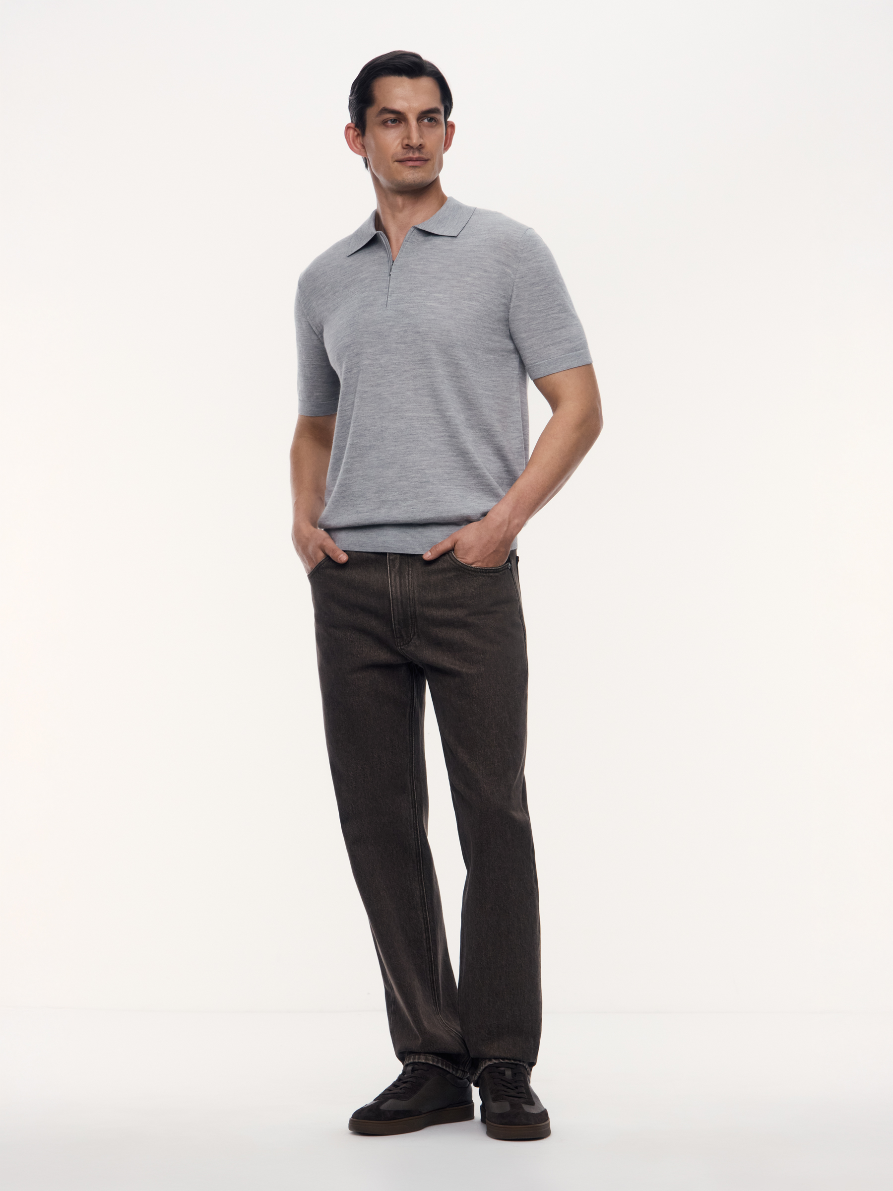 Джемпер-поло Arno из шерсти и шелка (Серый)