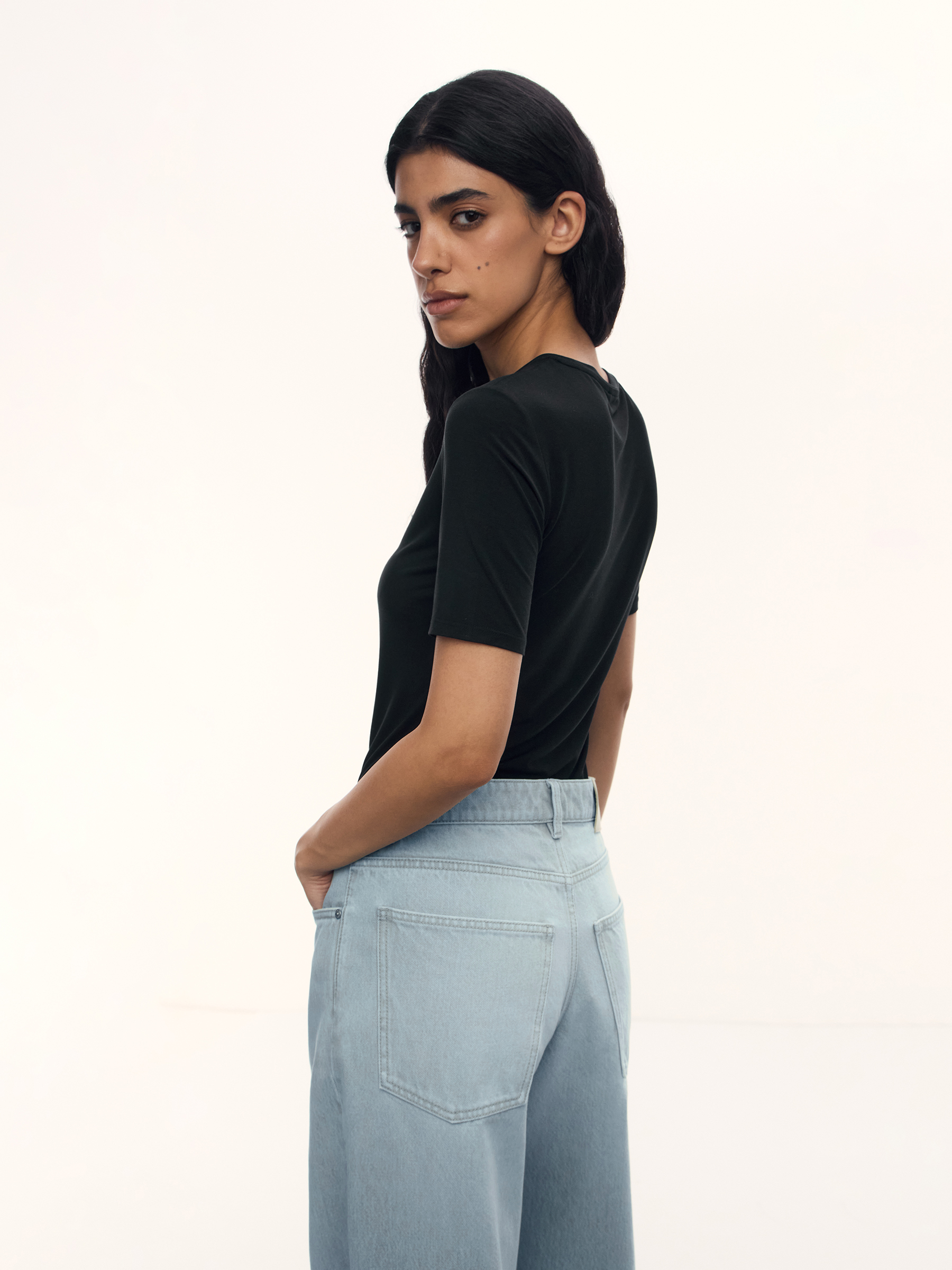 Футболка Fitted из модала и шелка (Черный)