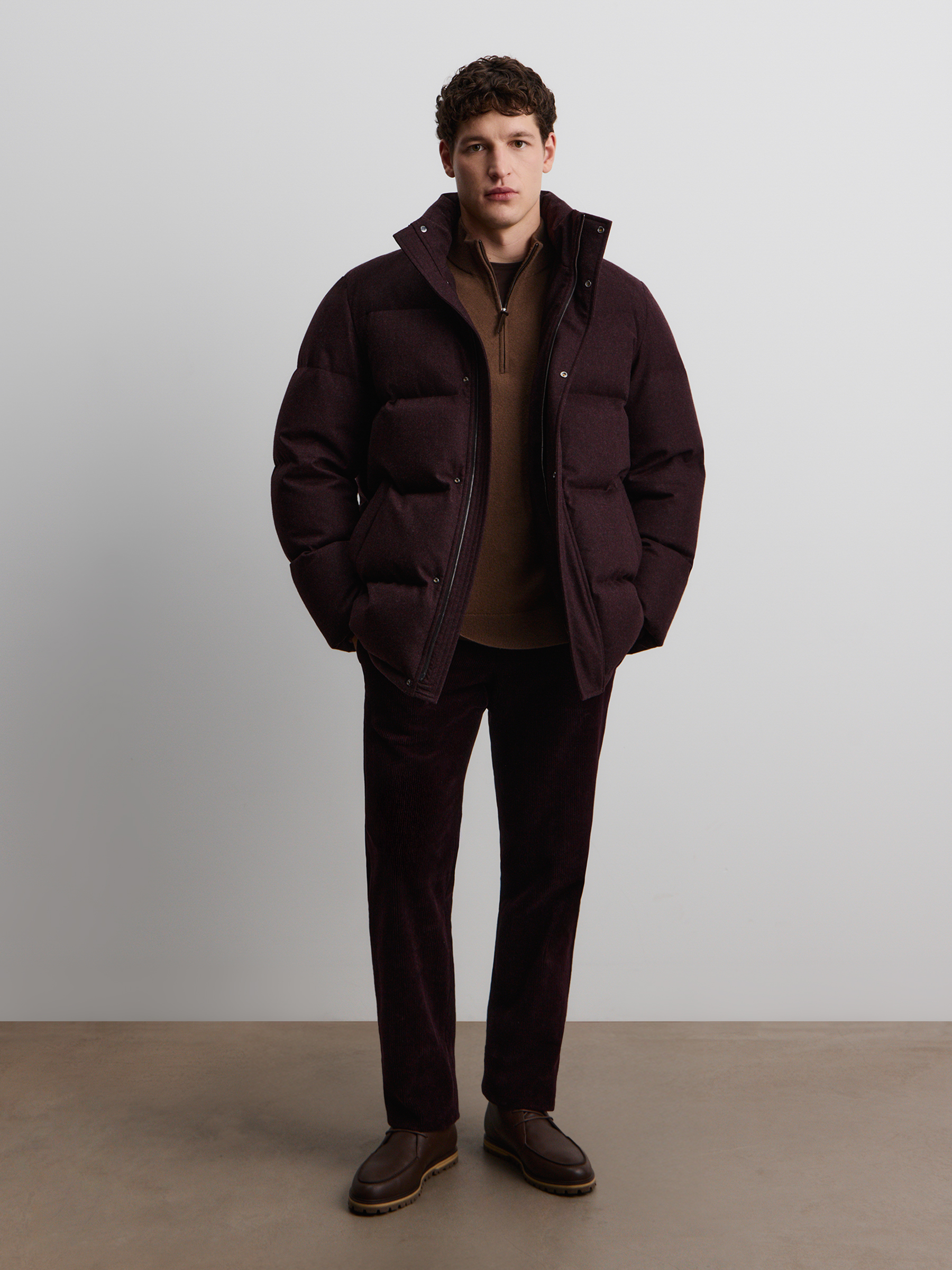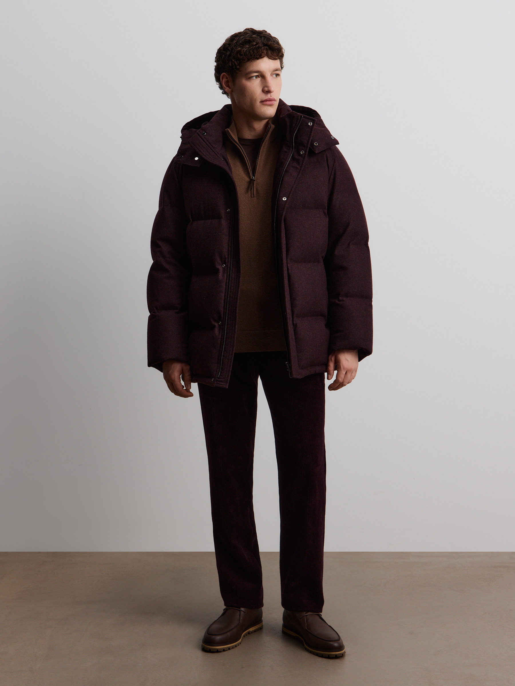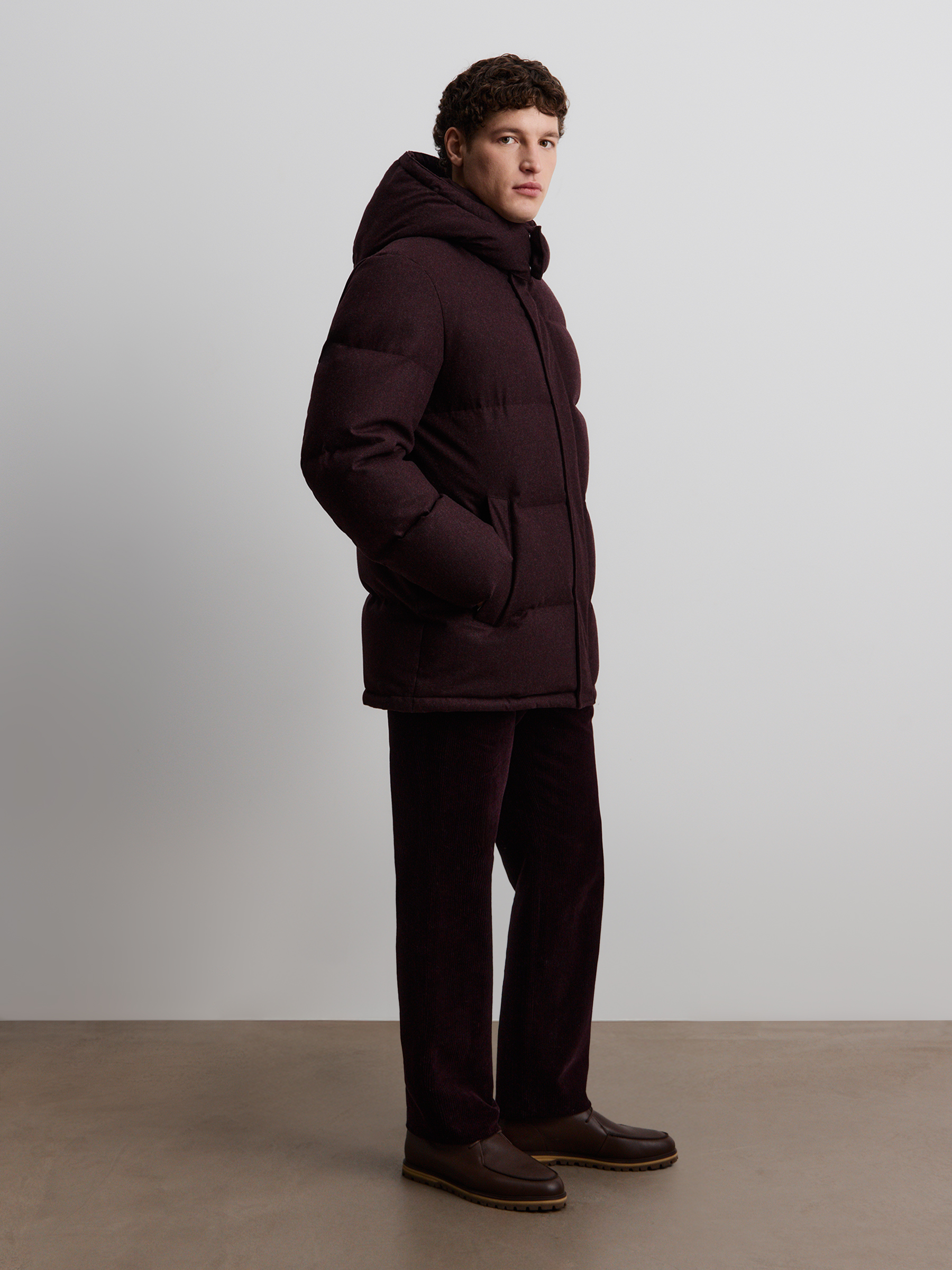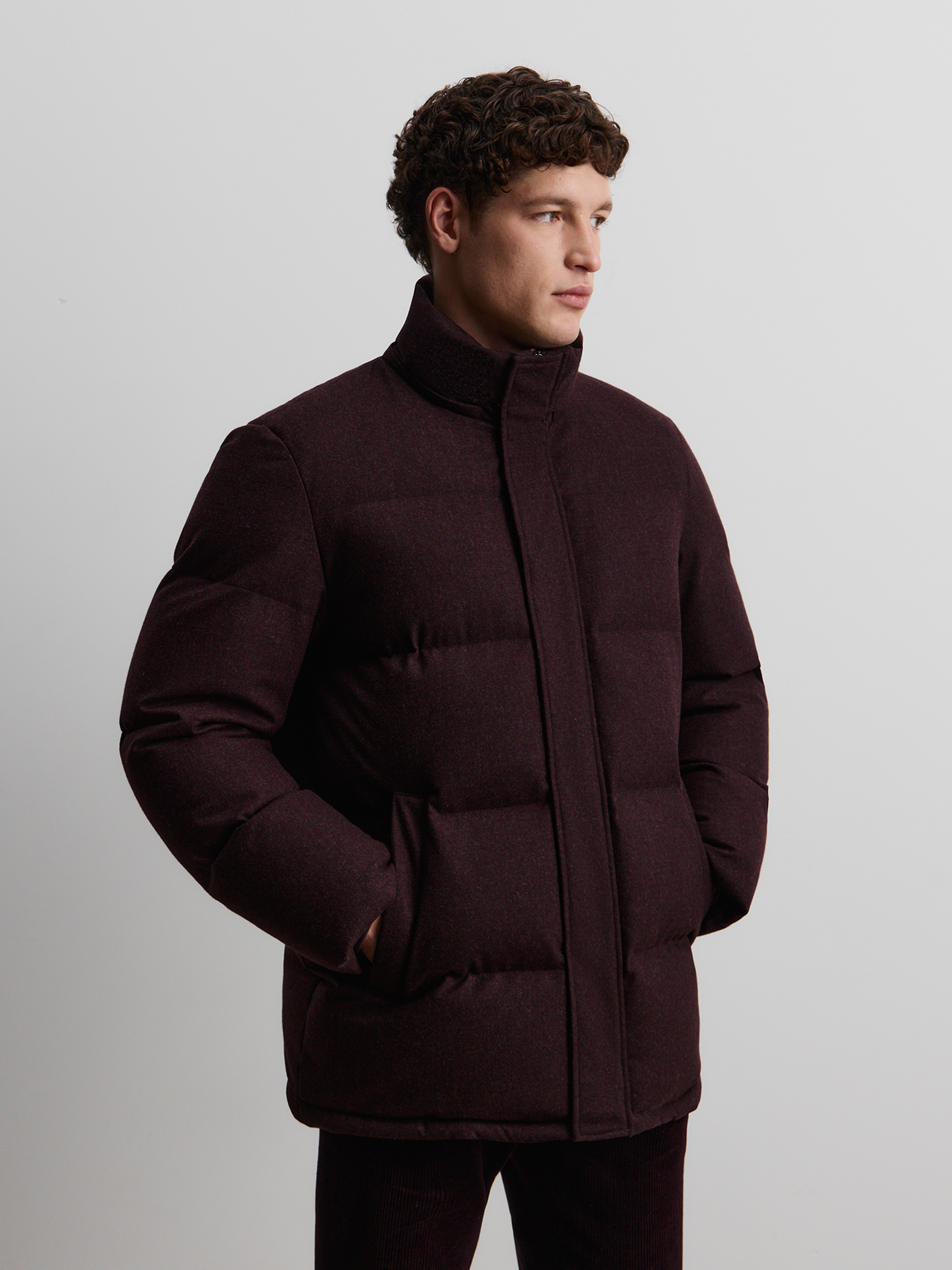 Пуховик Siberia из шерсти и кашемира (Ежевичный)