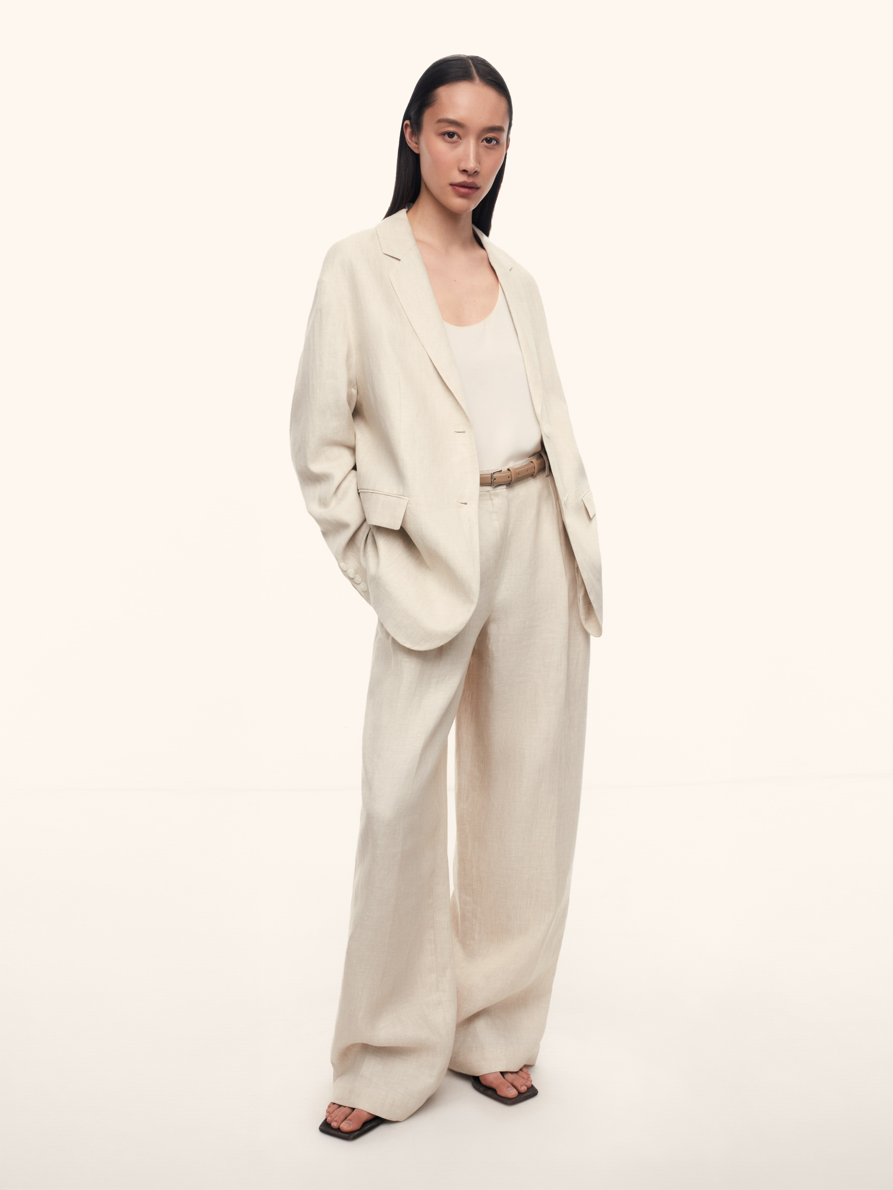 Жакет из плотного льна (Серо-бежевый)